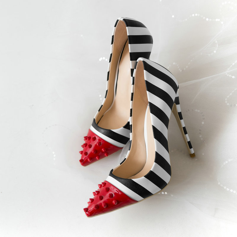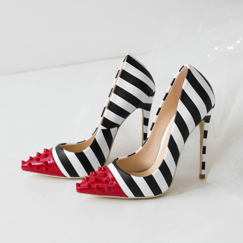 Fashion Rivet Striped High Heels