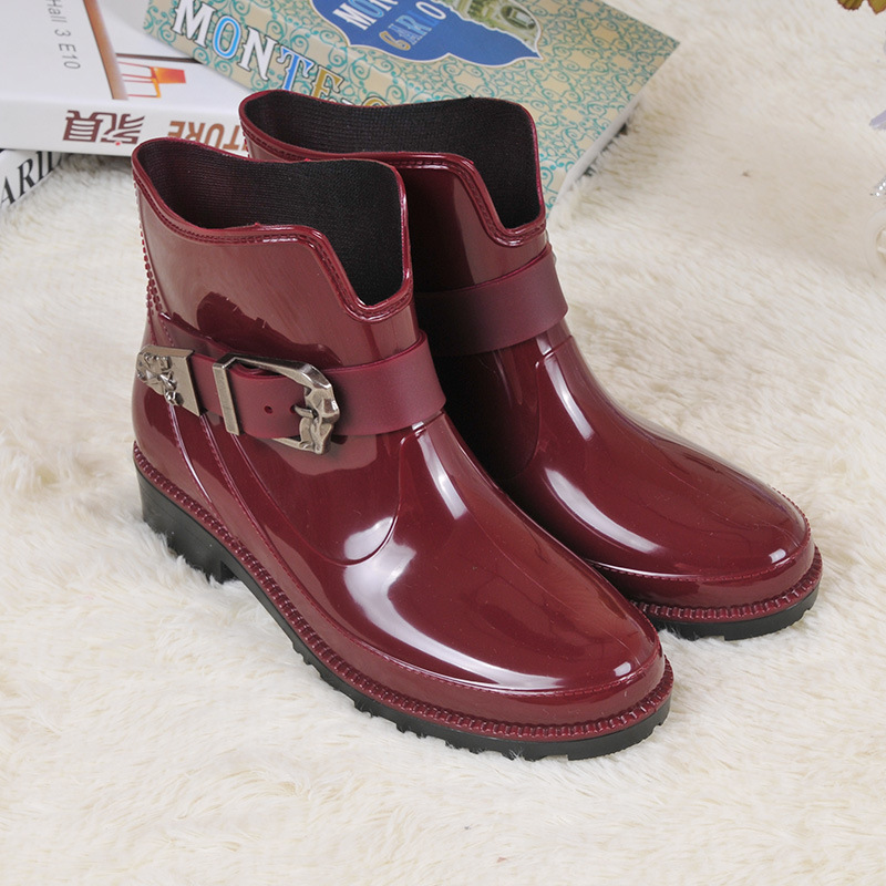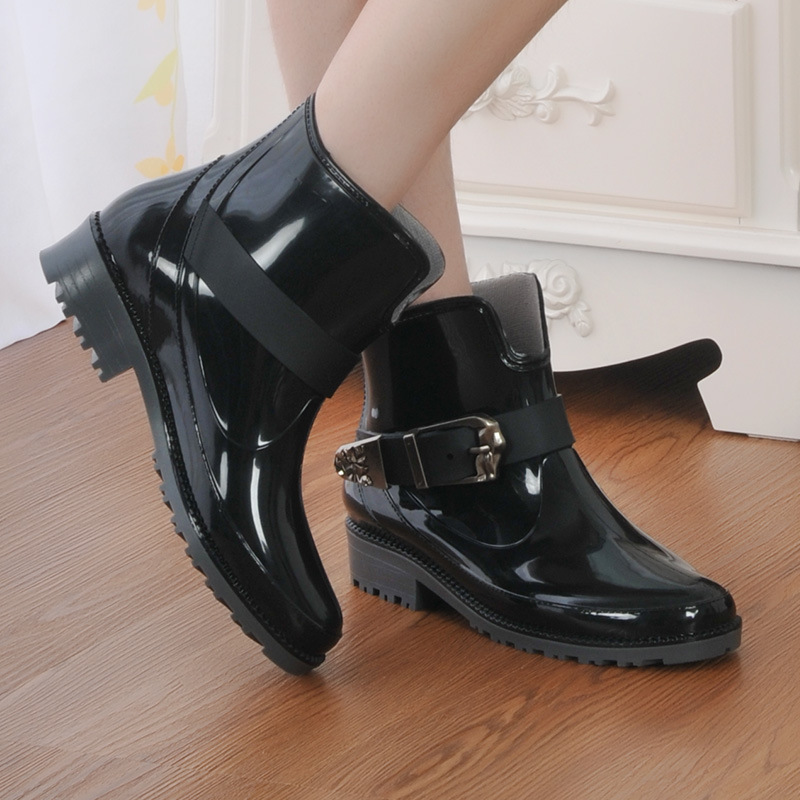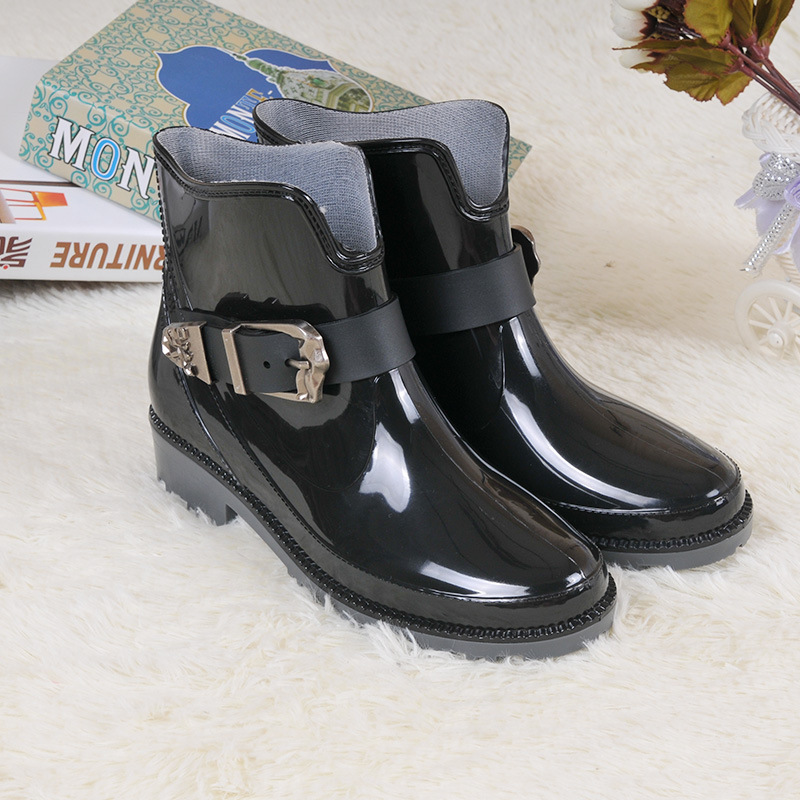 Fashion Buckle Up Ankle Rainboots Boots