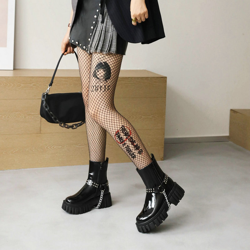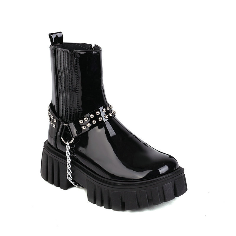Metal Studded Chain Platform Black Boots