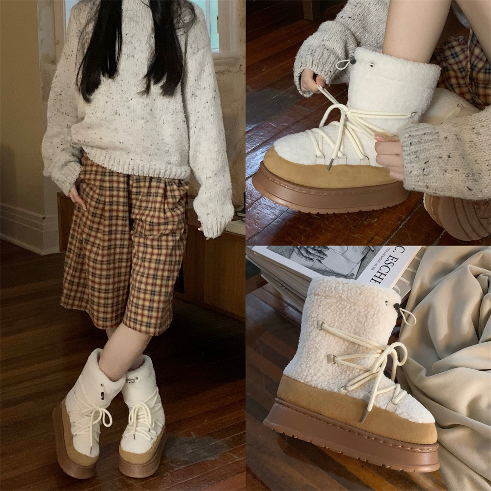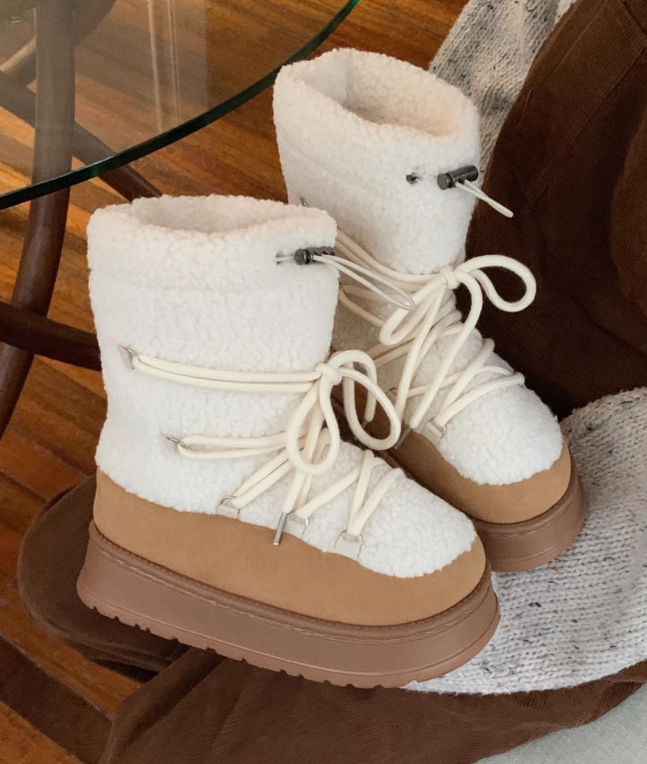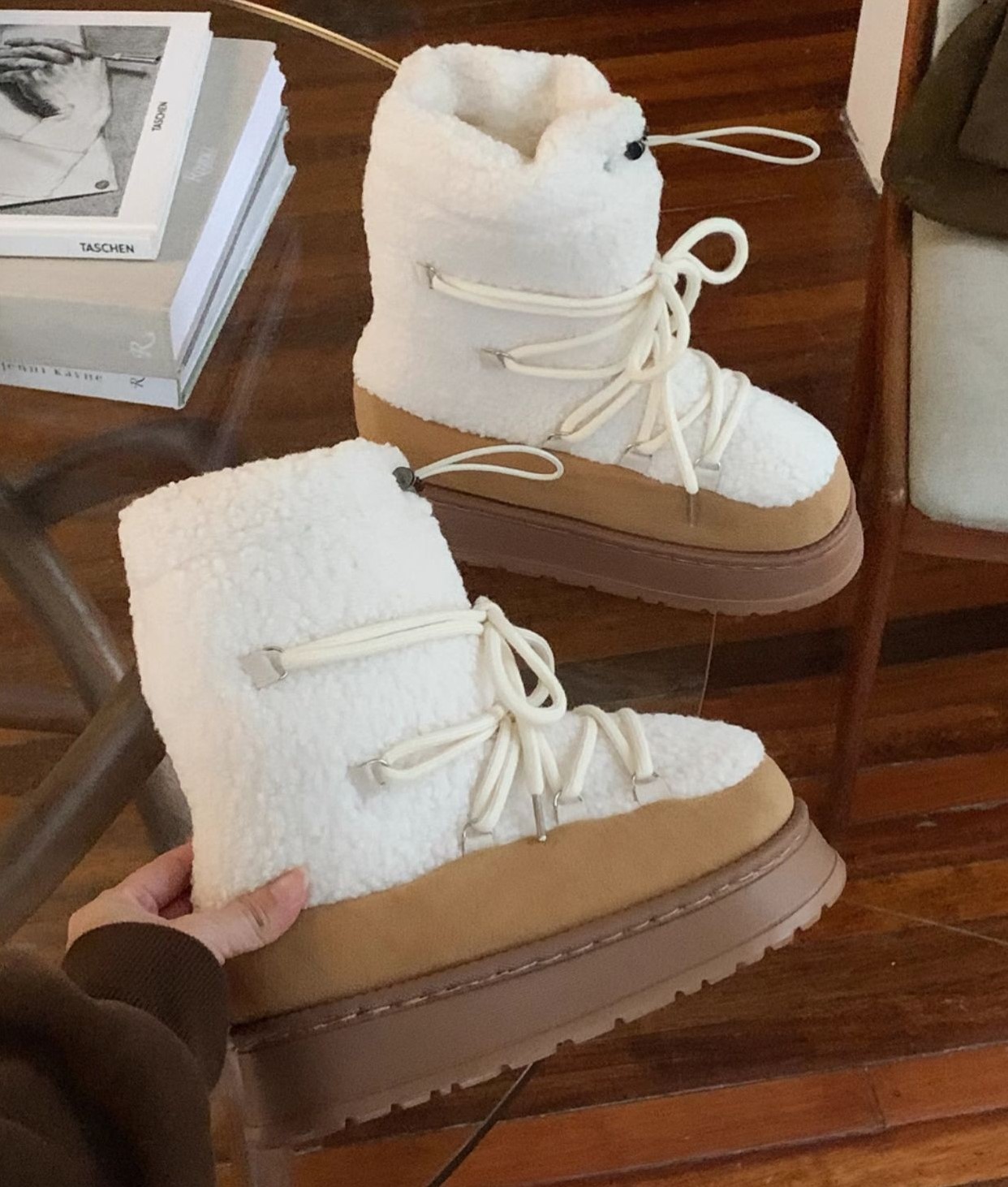 Step back in time with our Retro Lace Up Platform Fleece Boots. These stylish and cozy boots combine the vintage charm of lace-up detailing with a modern platform sole for a trendy edge. Crafted with soft, plush fleece lining, they offer exceptional warmth and comfort during the colder months. The chunky platform adds a touch of height and attitude, making them perfect for casual outings or dressed-up occasions. Whether you're a fashion-forward individual or simply looking for a comfortable and stylish pair of boots, our Retro Lace Up Platform Fleece Boots are a must-have addition to your wardrobe.
