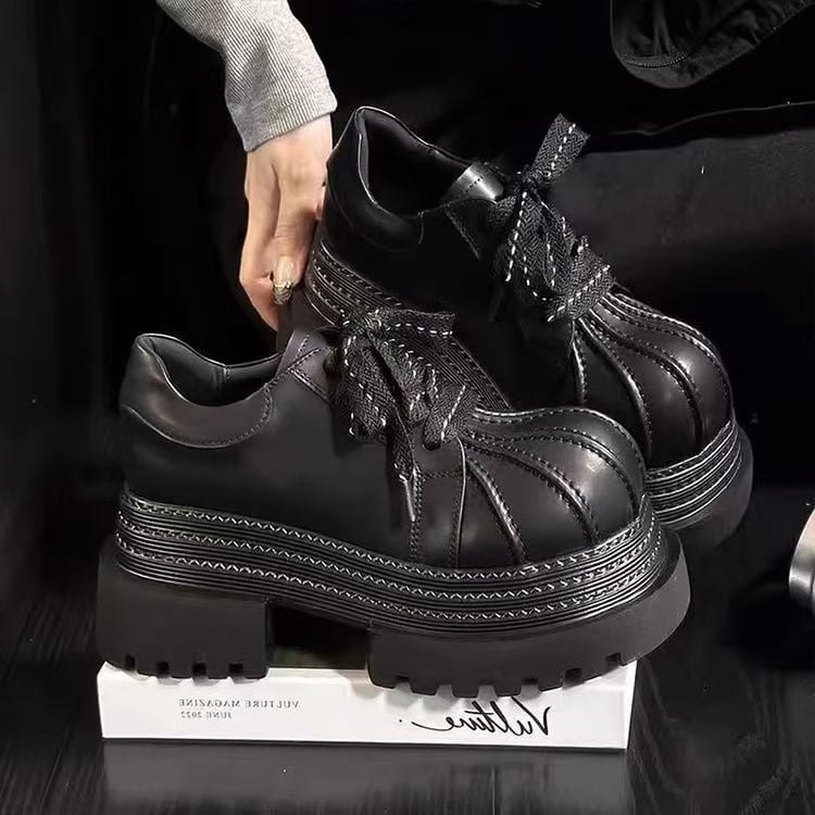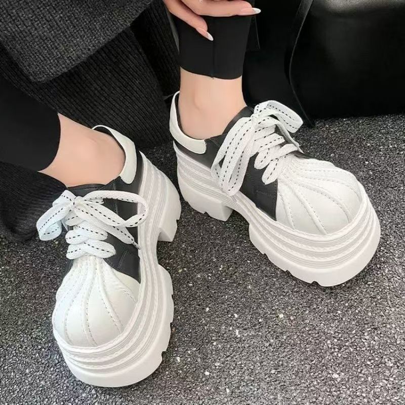 Step into bold style with our Big Toe Thick-Soled Platform Shoes. These shoes redefine footwear with a striking shell toe design, giving a modern twist to a classic silhouette. The lace-up closure ensures a secure and adjustable fit, while the chunky, high heels provide impressive elevation and confident strides.