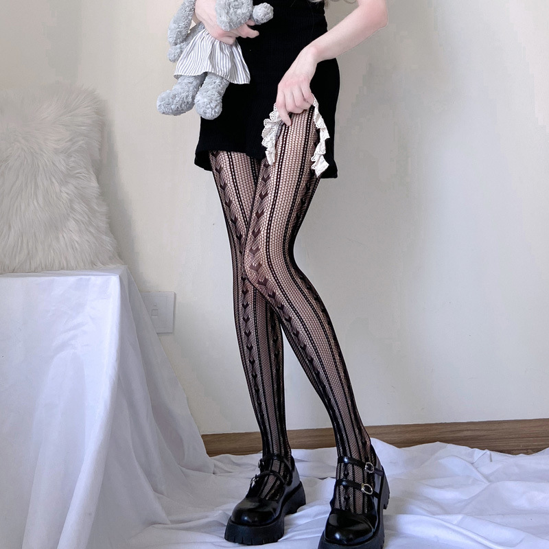 Love Hearts Fishnet Pantyhose Stockings Tights