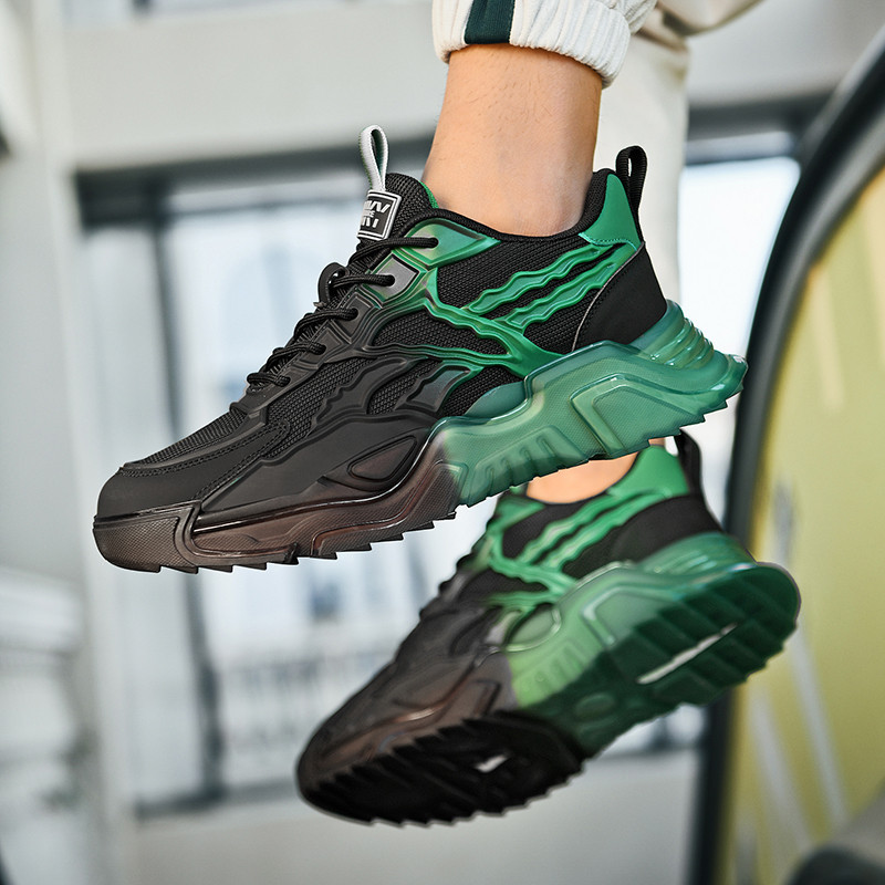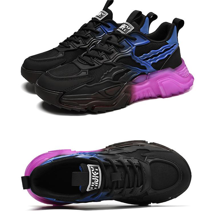 These shoes are made of high-quality flying woven fabric that is breathable and elastic. They fit your feet like a glove and allow you to move freely and smoothly. They also have a chameleon bottom that changes color according to the angle and light. You can enjoy the dazzling and dynamic display of colors as you walk, run, or jump.
