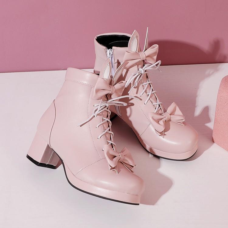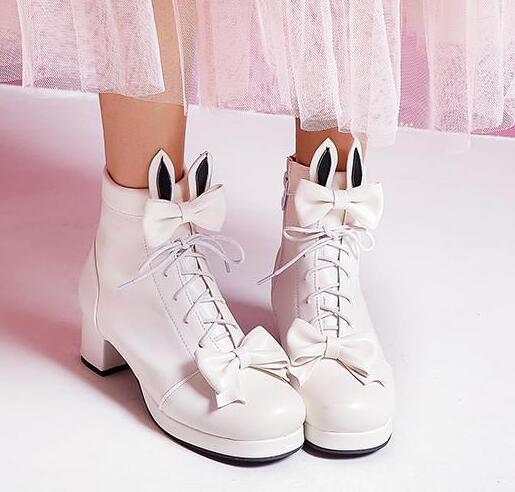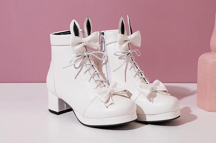Rabbit Ears Bowknot Heels - Pink/White