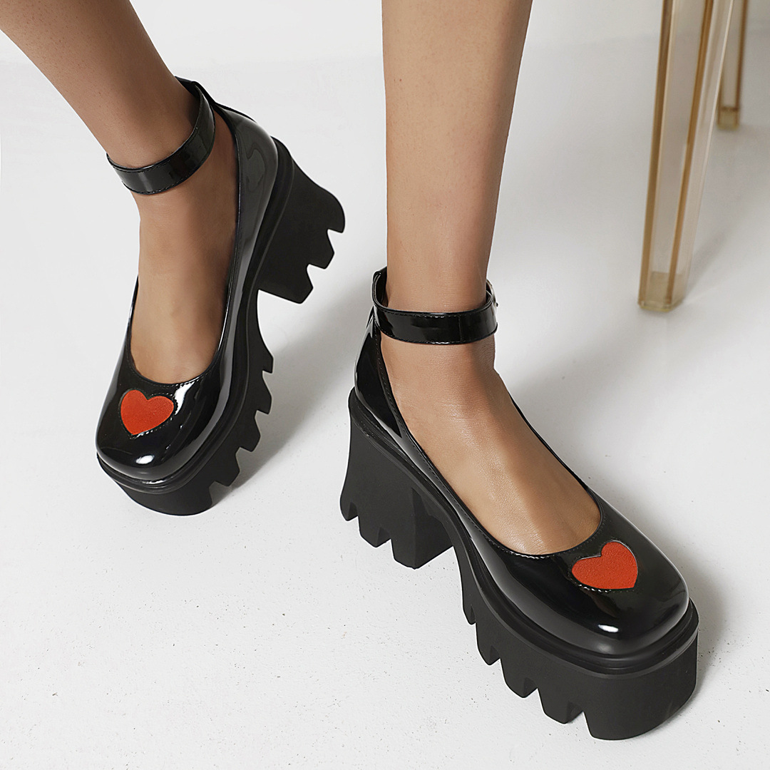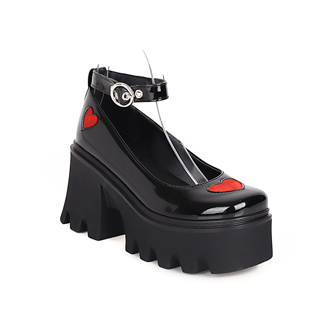 Material: High-quality man-made leather Heel height: 8cm Size is in US size. Please do carefully mind the sizing chart!