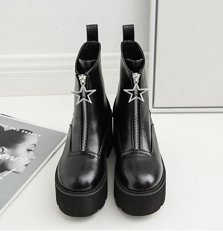 Material: High-quality man-made leather Heel height: 8cm Size is in US size. Please do carefully mind the sizing chart!