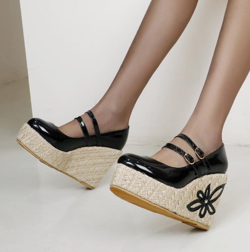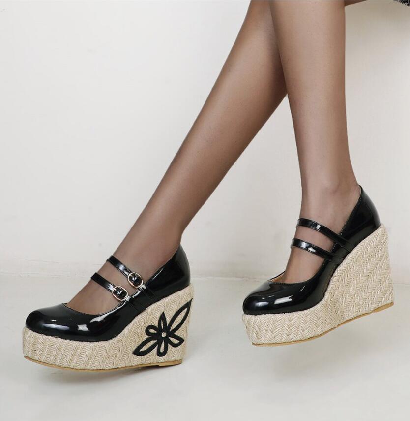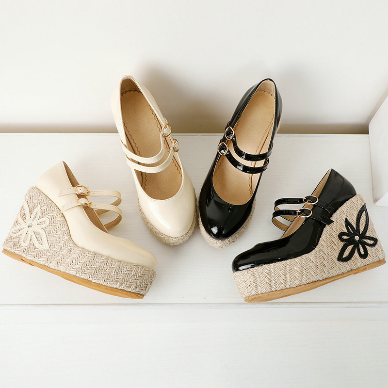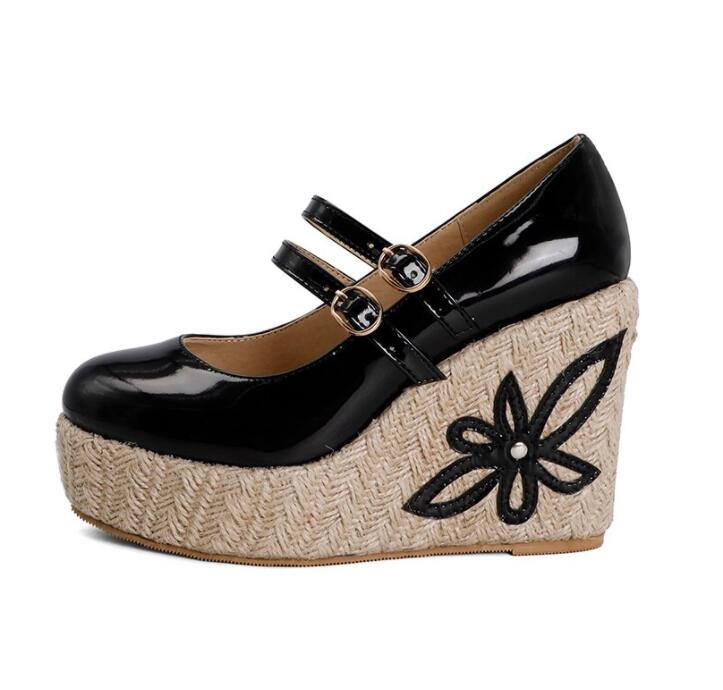 Fashion Patent Leather Wedges With Floral Detail