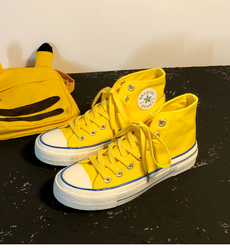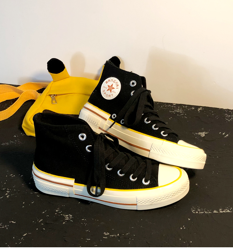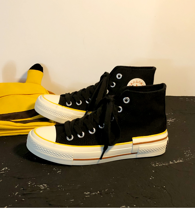 Fashion Yellow Black Lace Up Sneakers