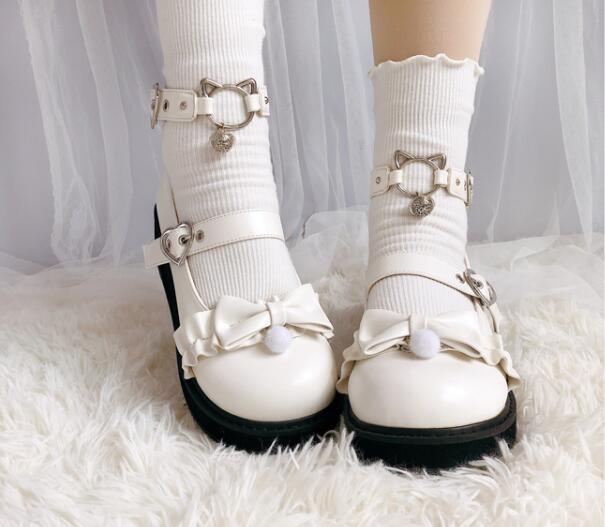 JK Bowknot Cat Ankle Strap Shoes