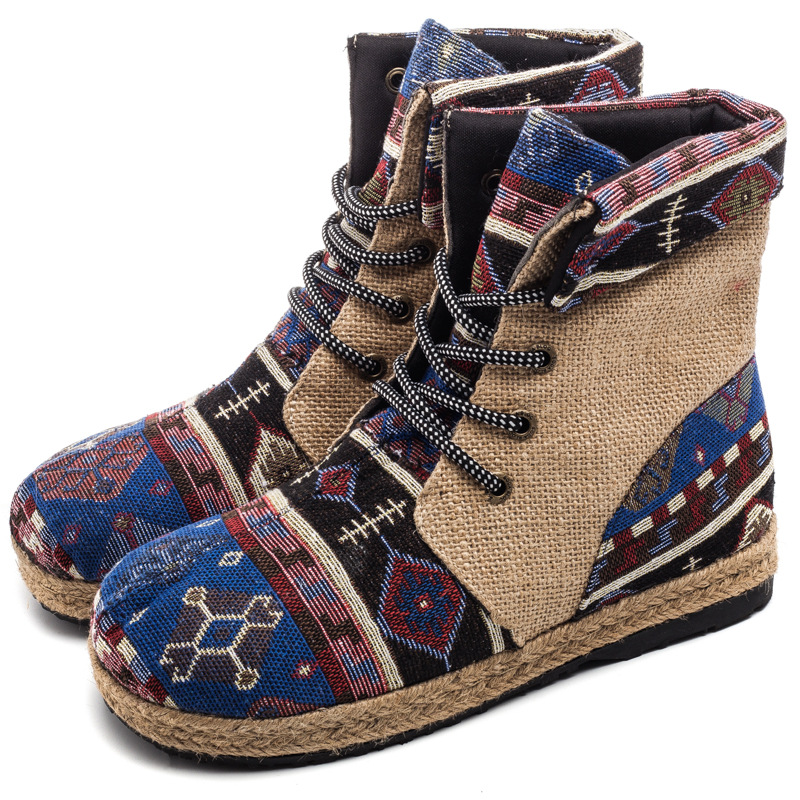 Ethnic Style Linen Booties