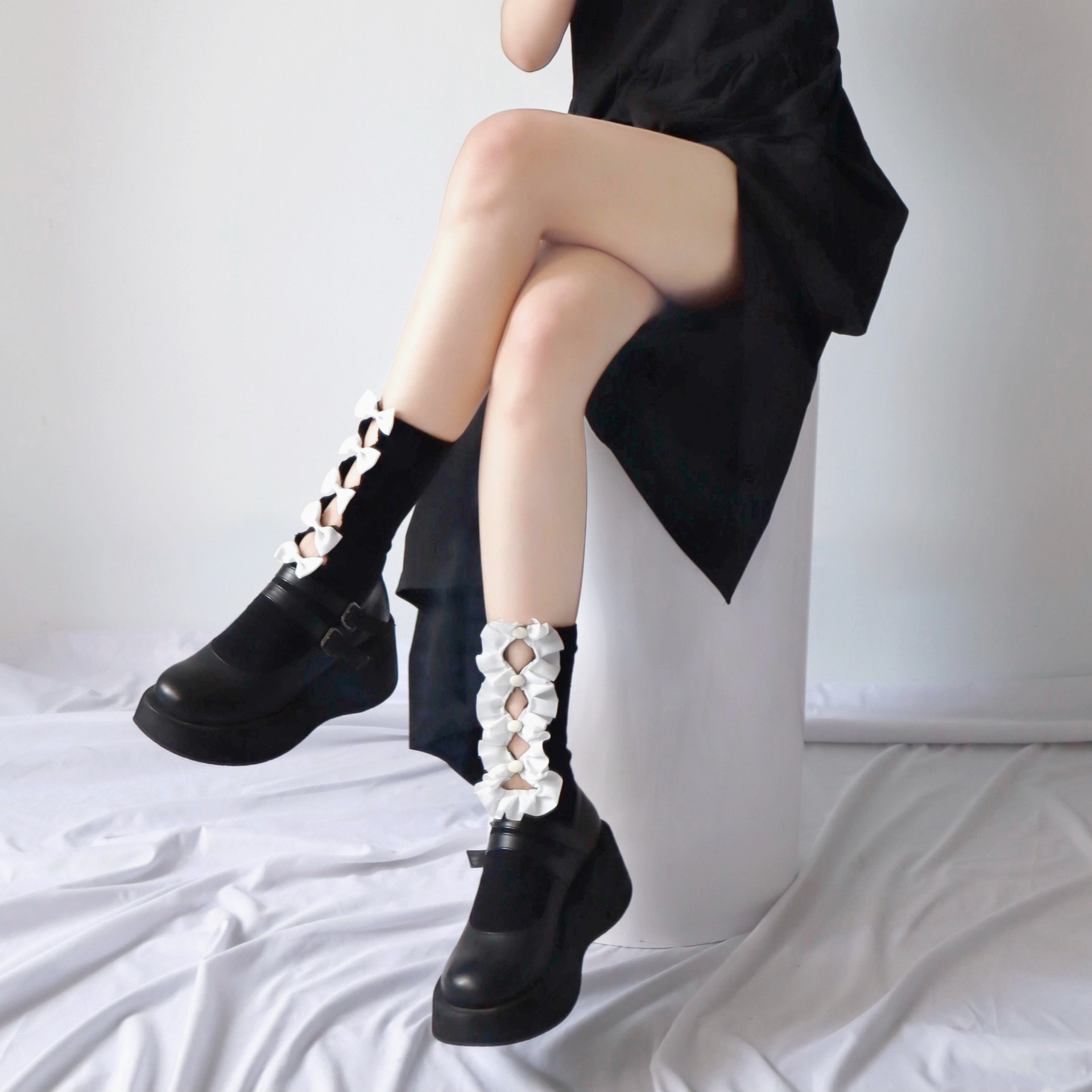 Hollowed Out Asymmetrical Bowknot Socks