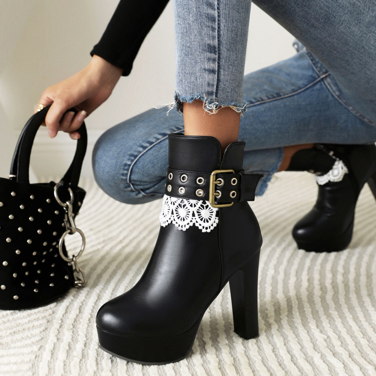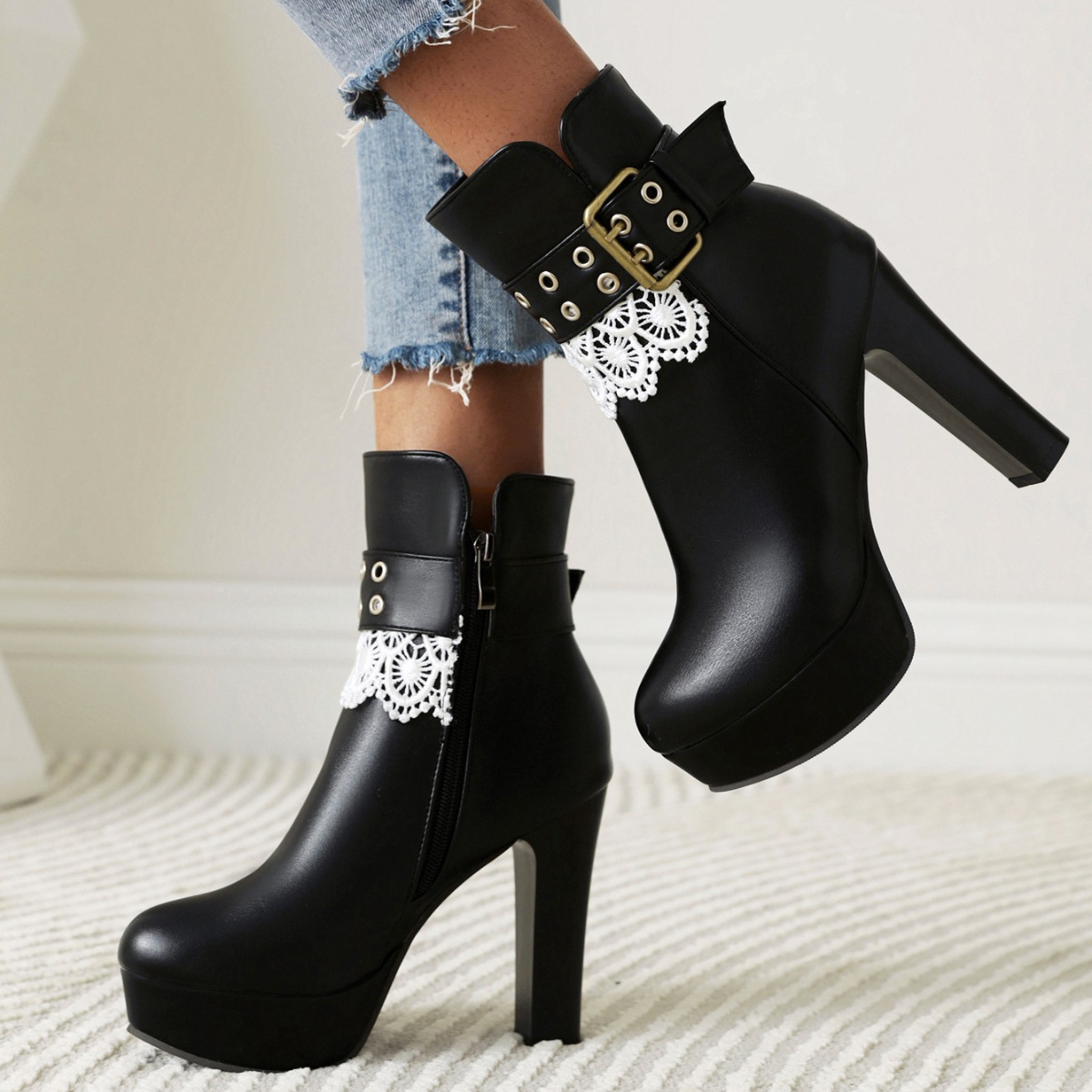 Material: High-quality man-made leather Heel height: 11cm Size is in US size. Please do carefully mind the sizing chart!