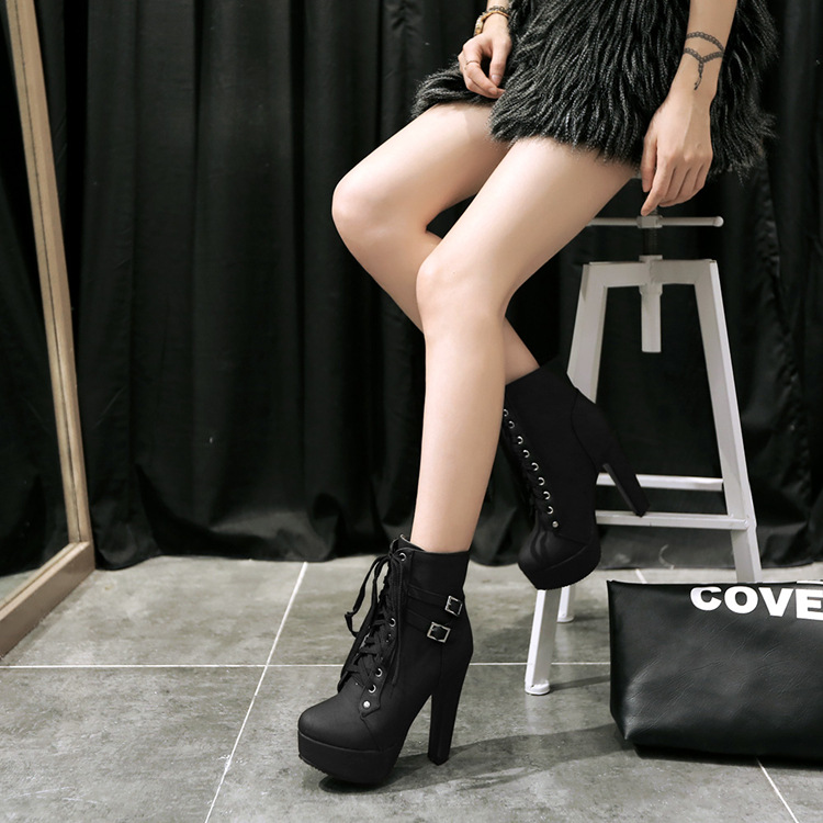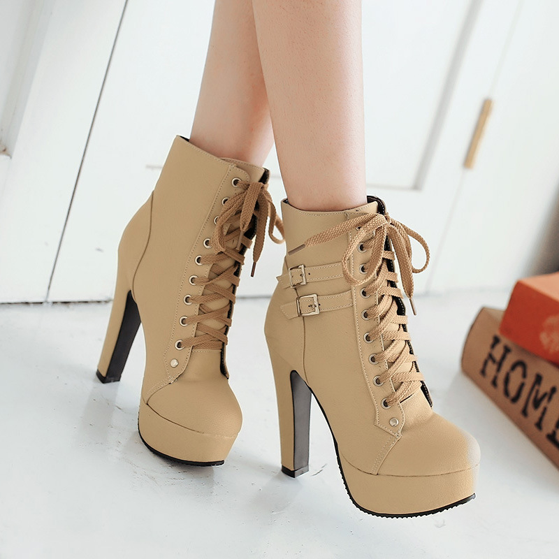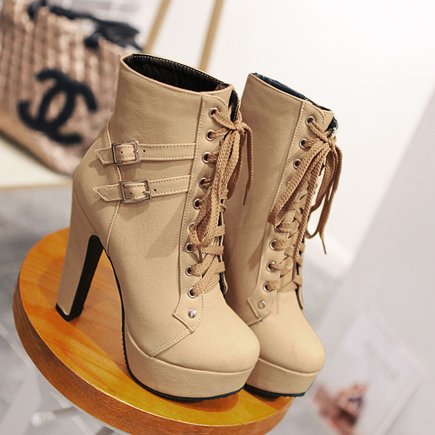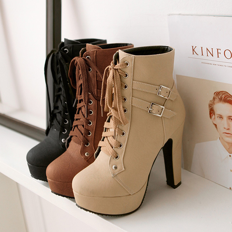 Punk Lace Up Chunky Heeled Booties