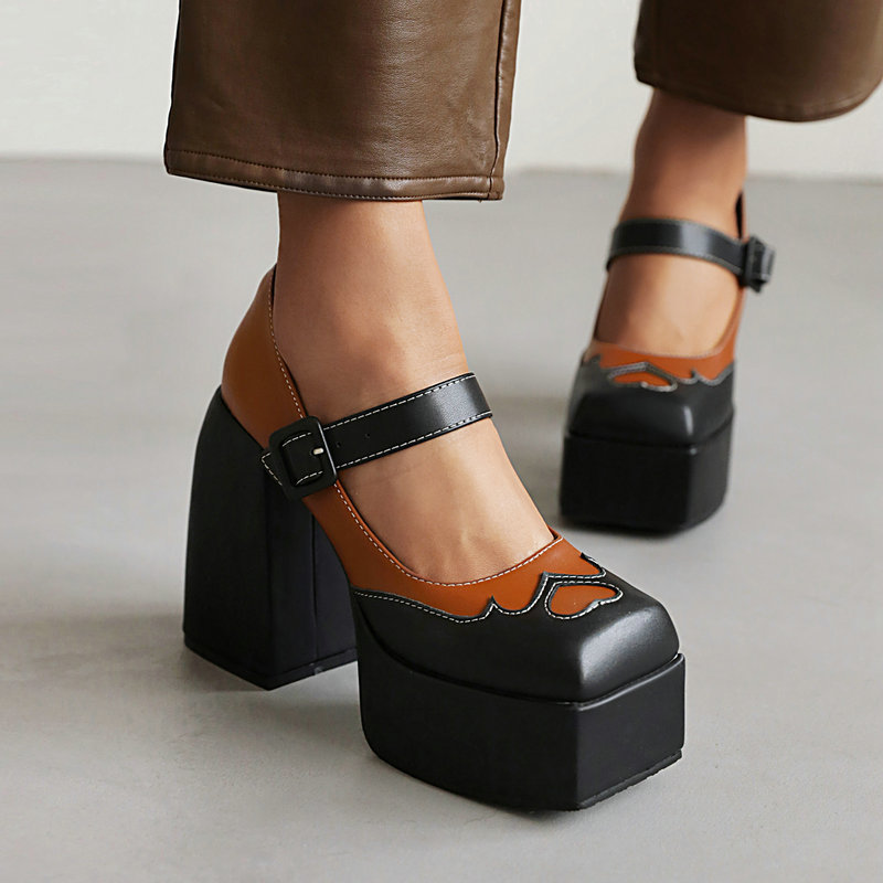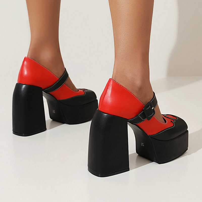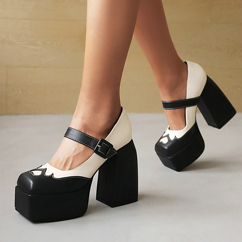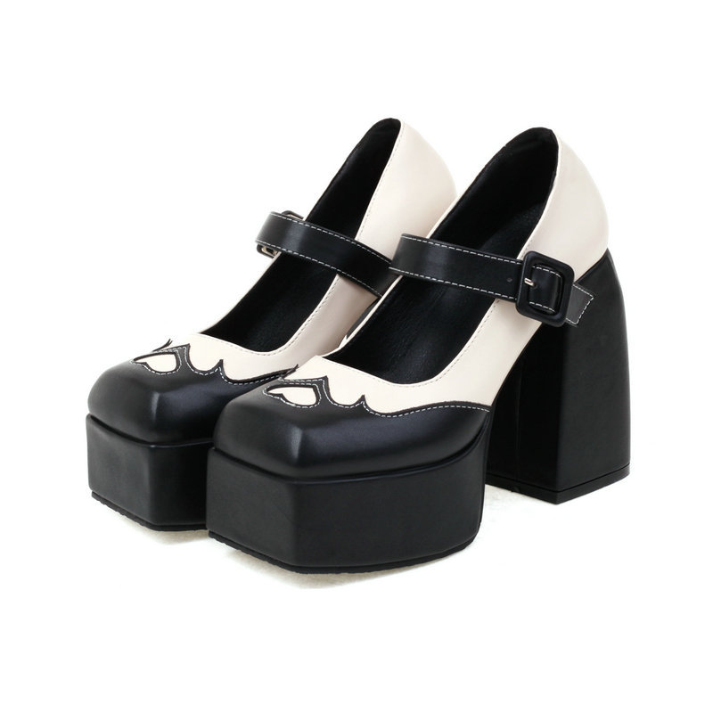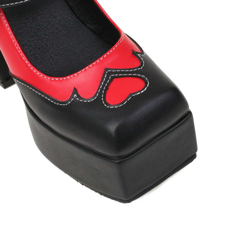 Heart Pattern Square Toe Chunky Heeled Shoes