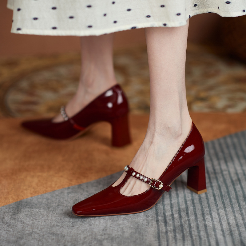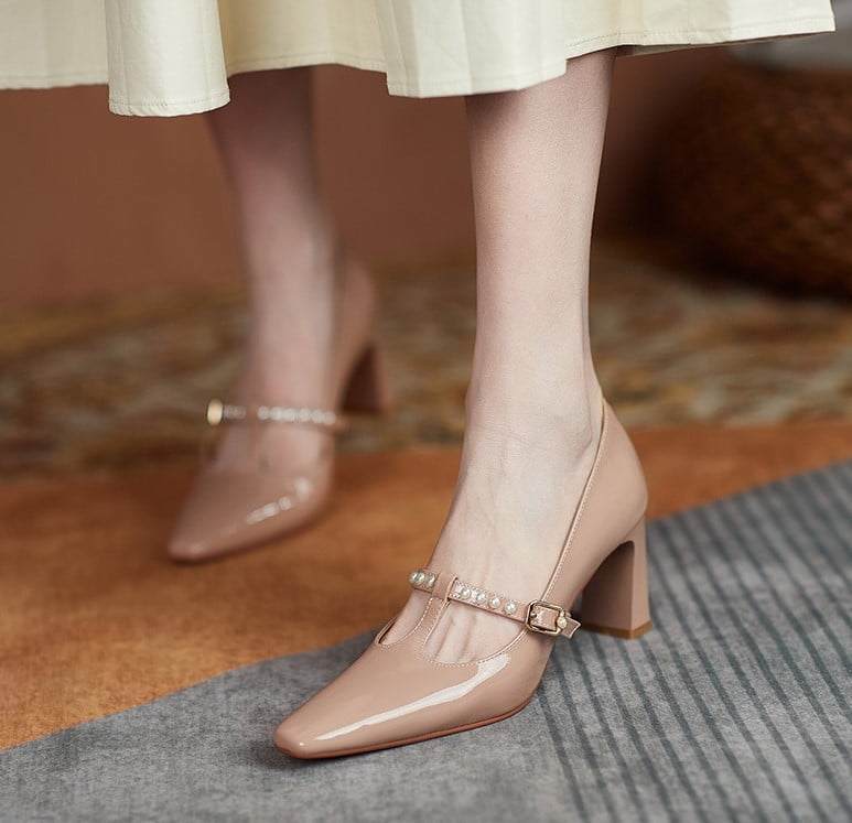 Retro Pearl Mary Jane Heeled Shoes