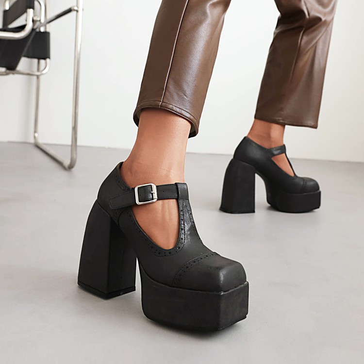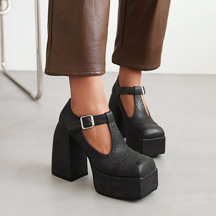 T-strap Chunky Heels Shoes