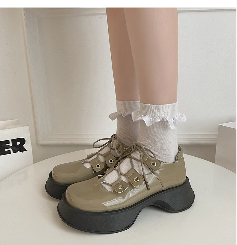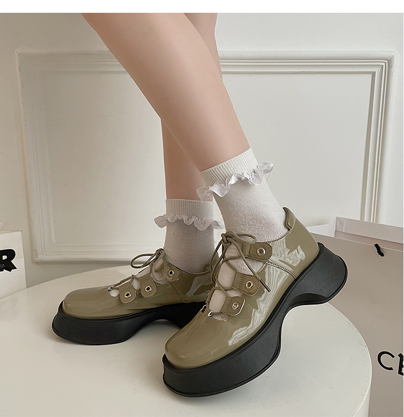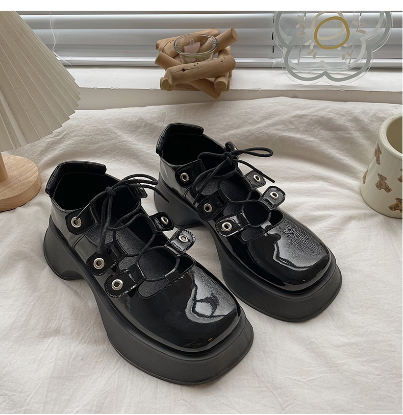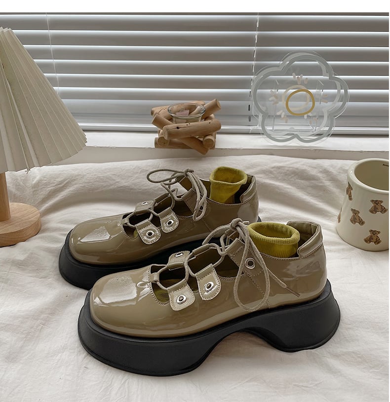JK Patent Leather Lace Up Platform Mary Jane Shoes
