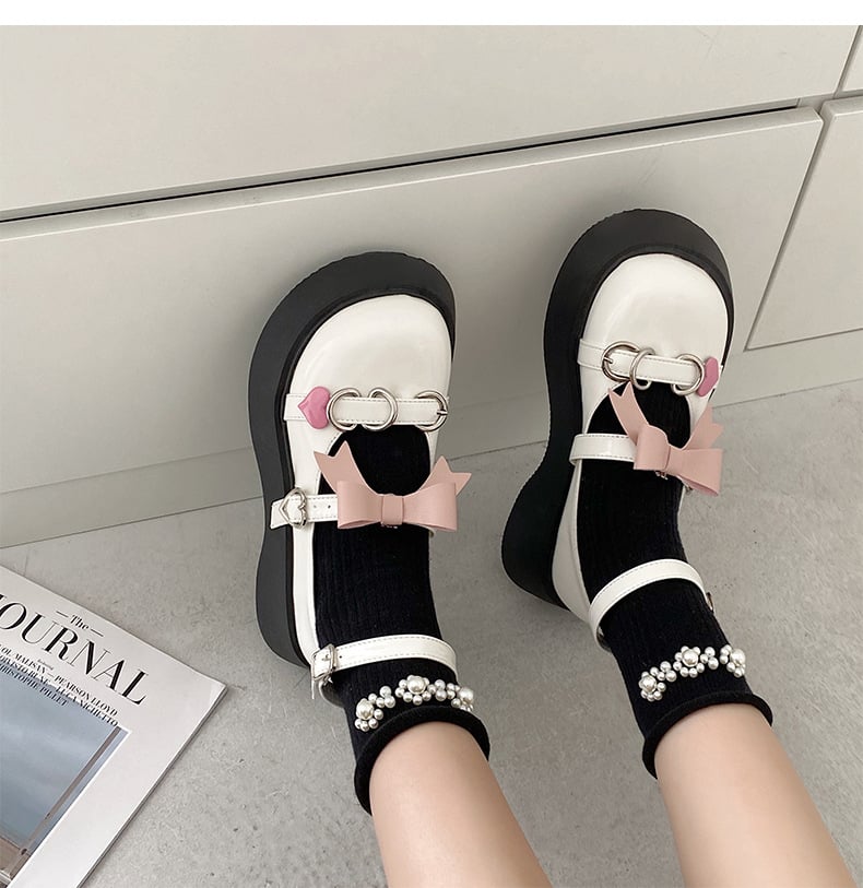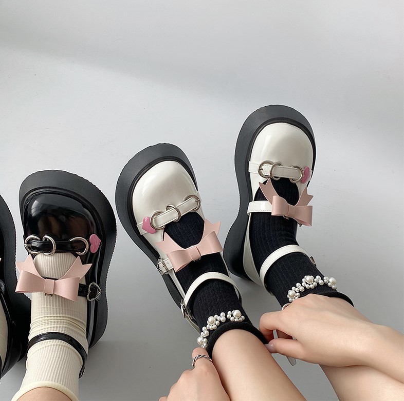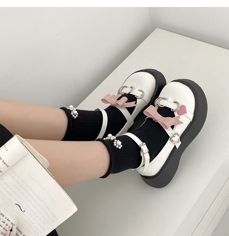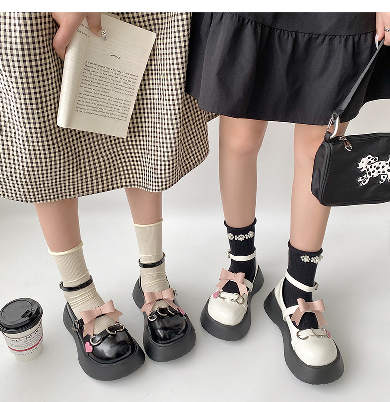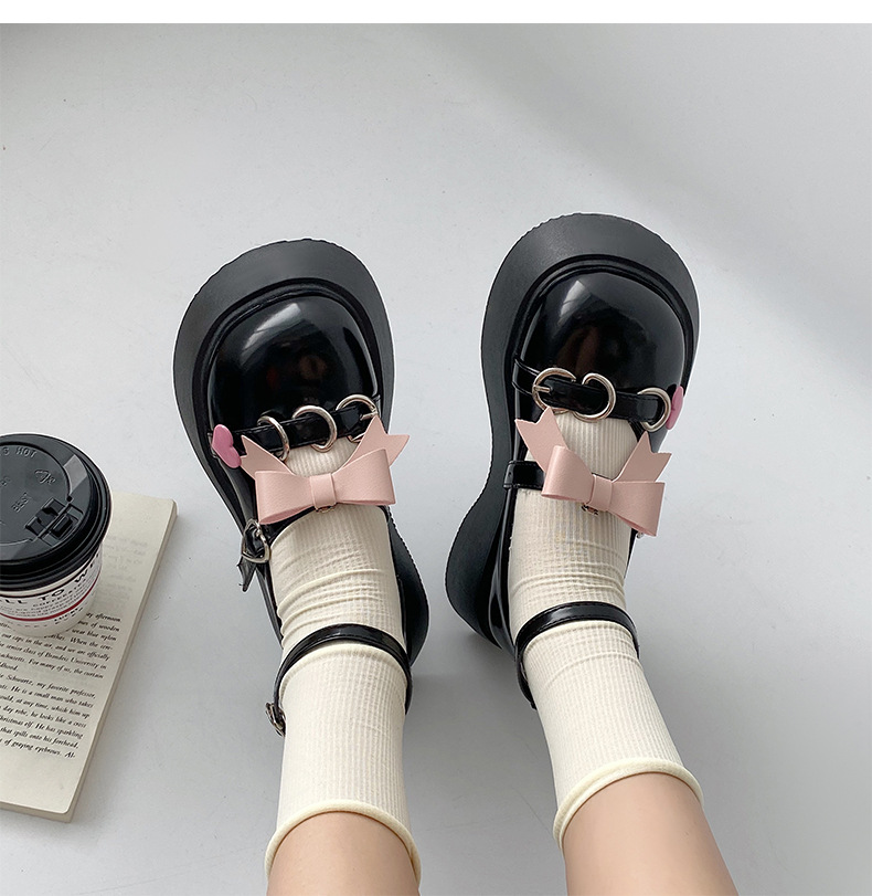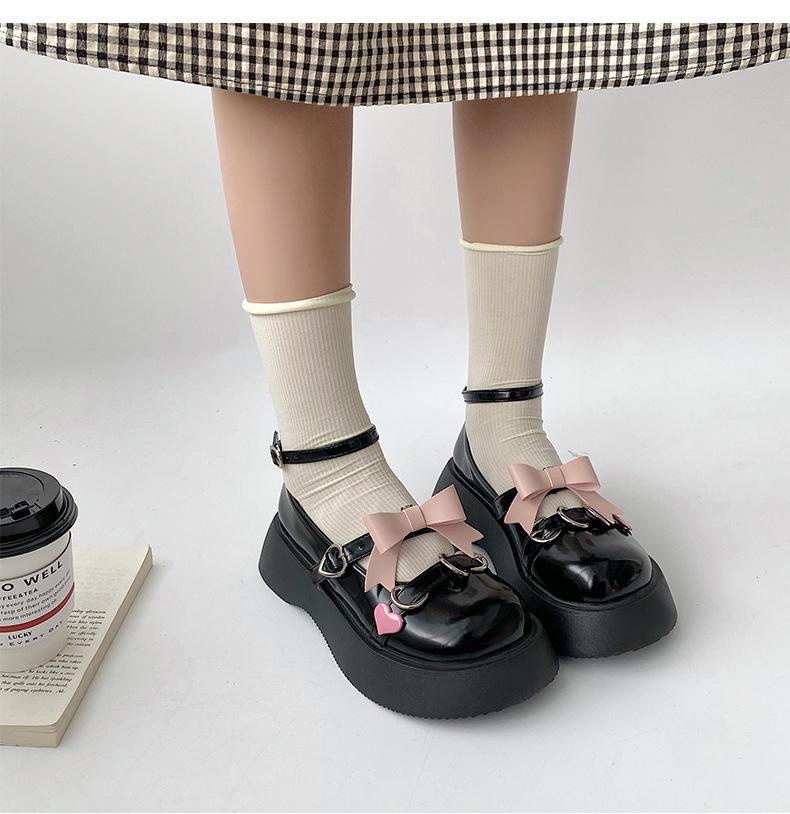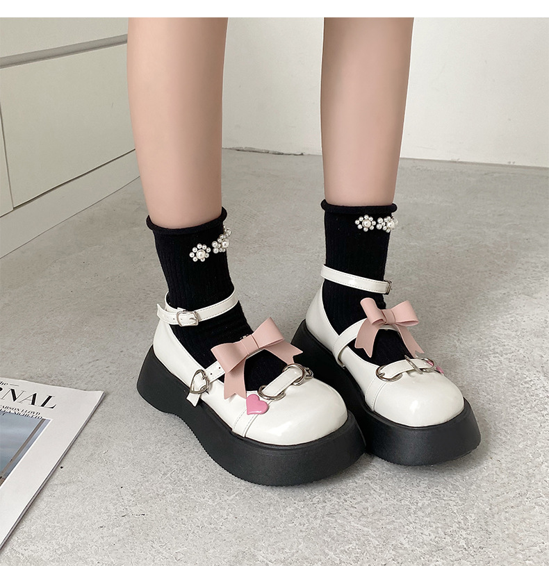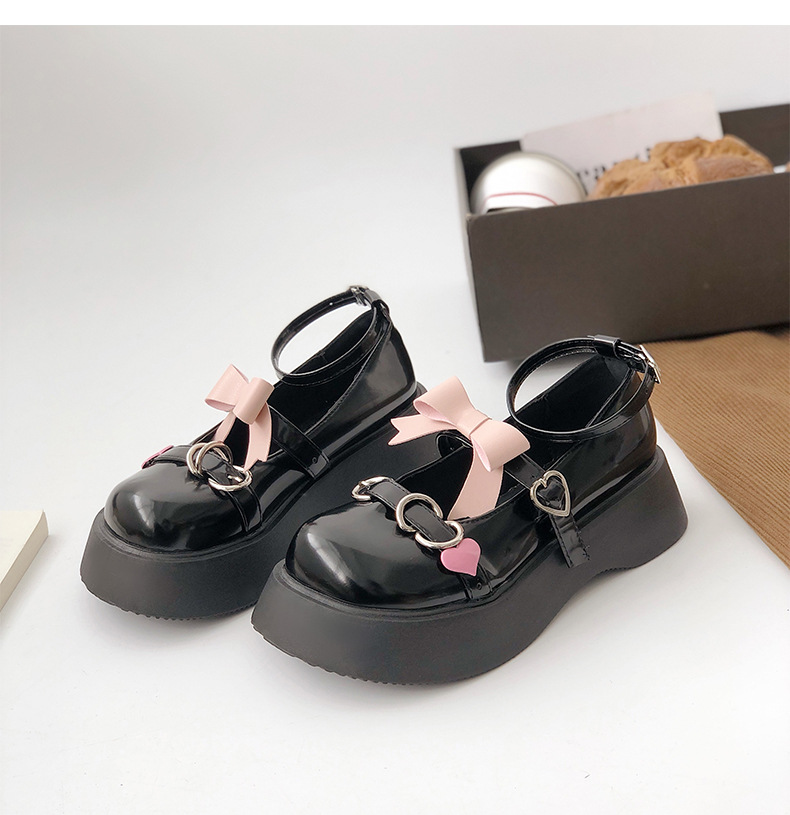 Sweet Bowknot Heart Round Toe Mary Jame Shoes