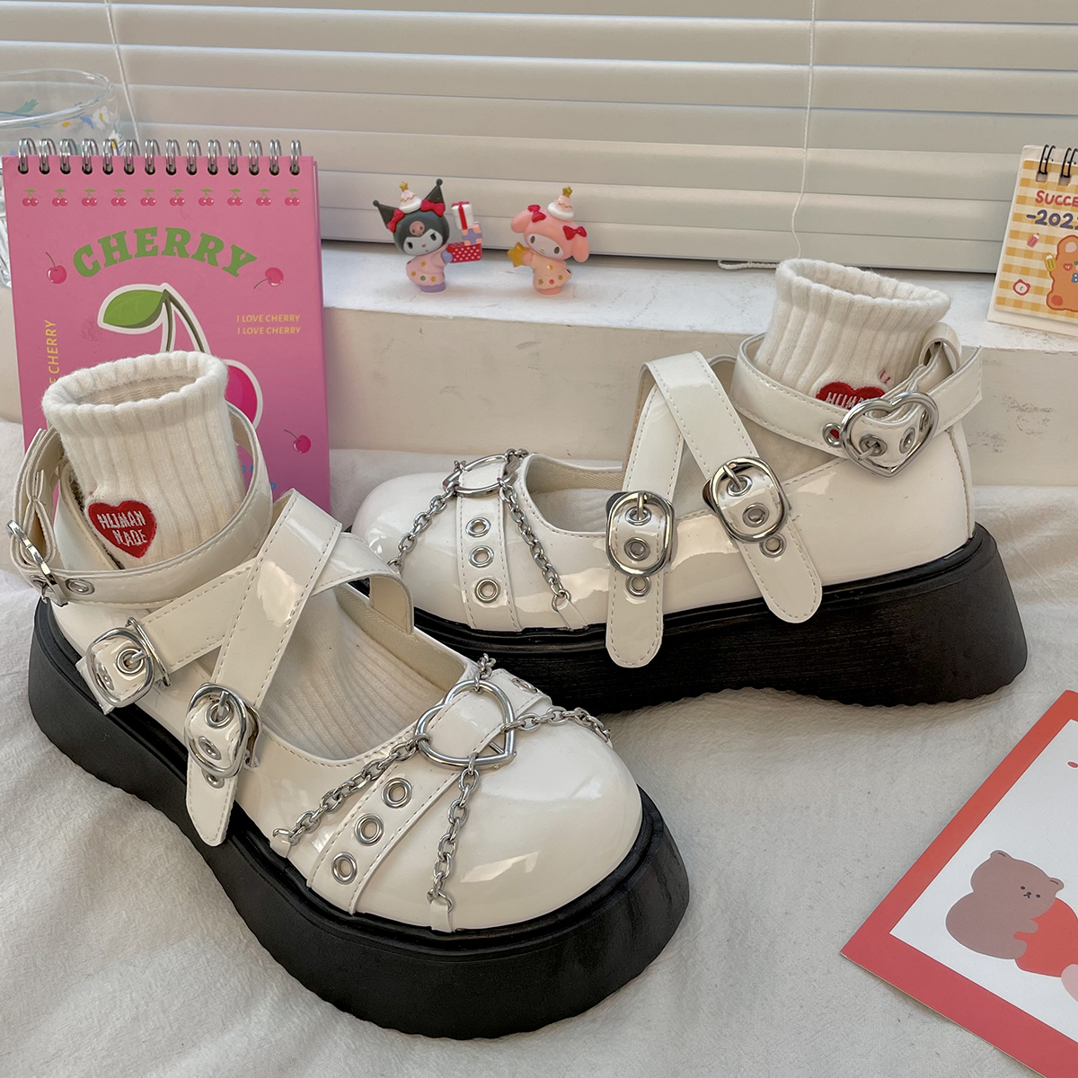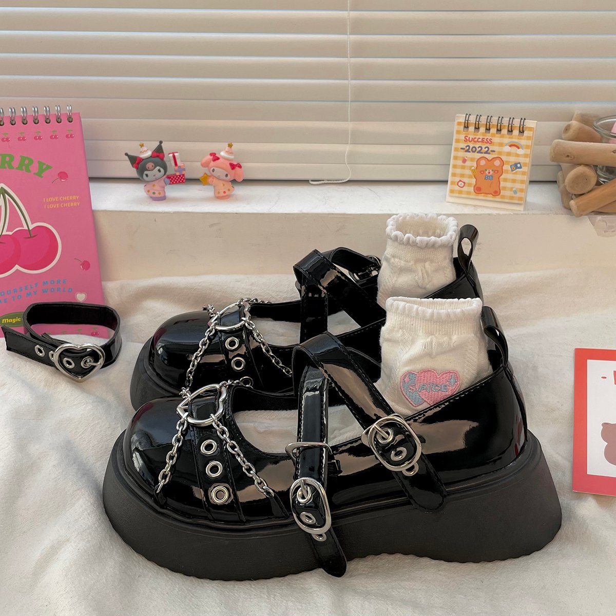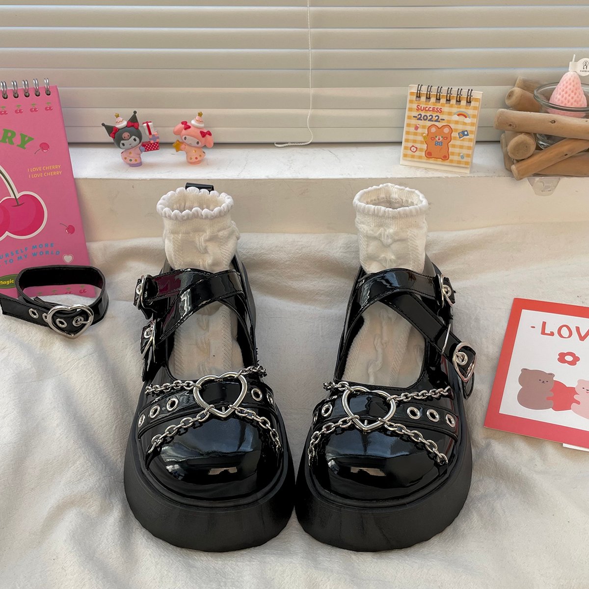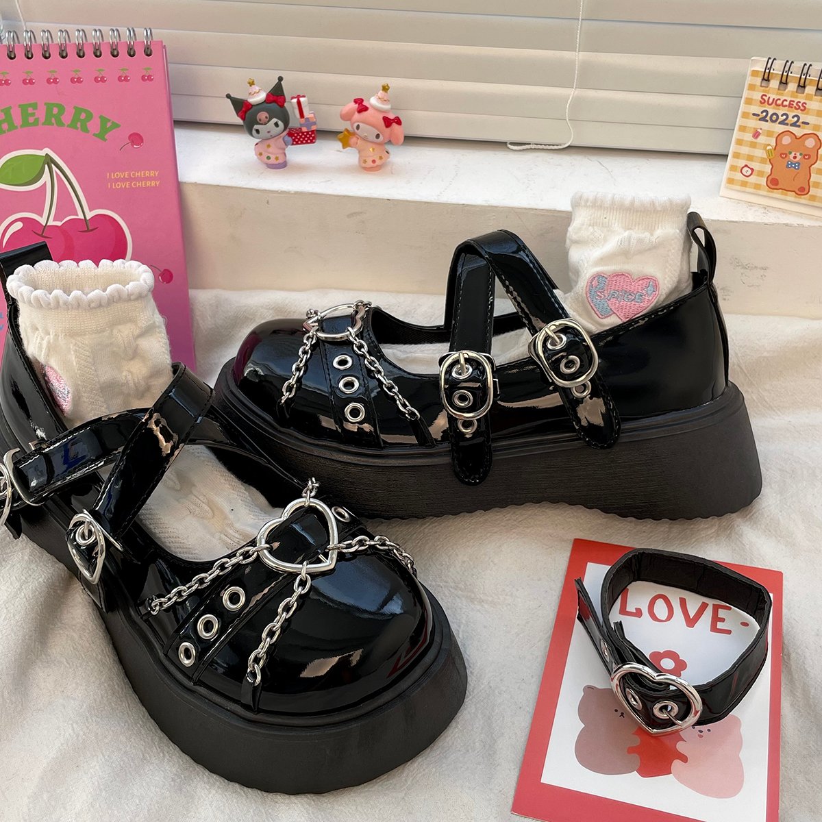 Metal Heart Chain Round Toe Mary Jame Shoes