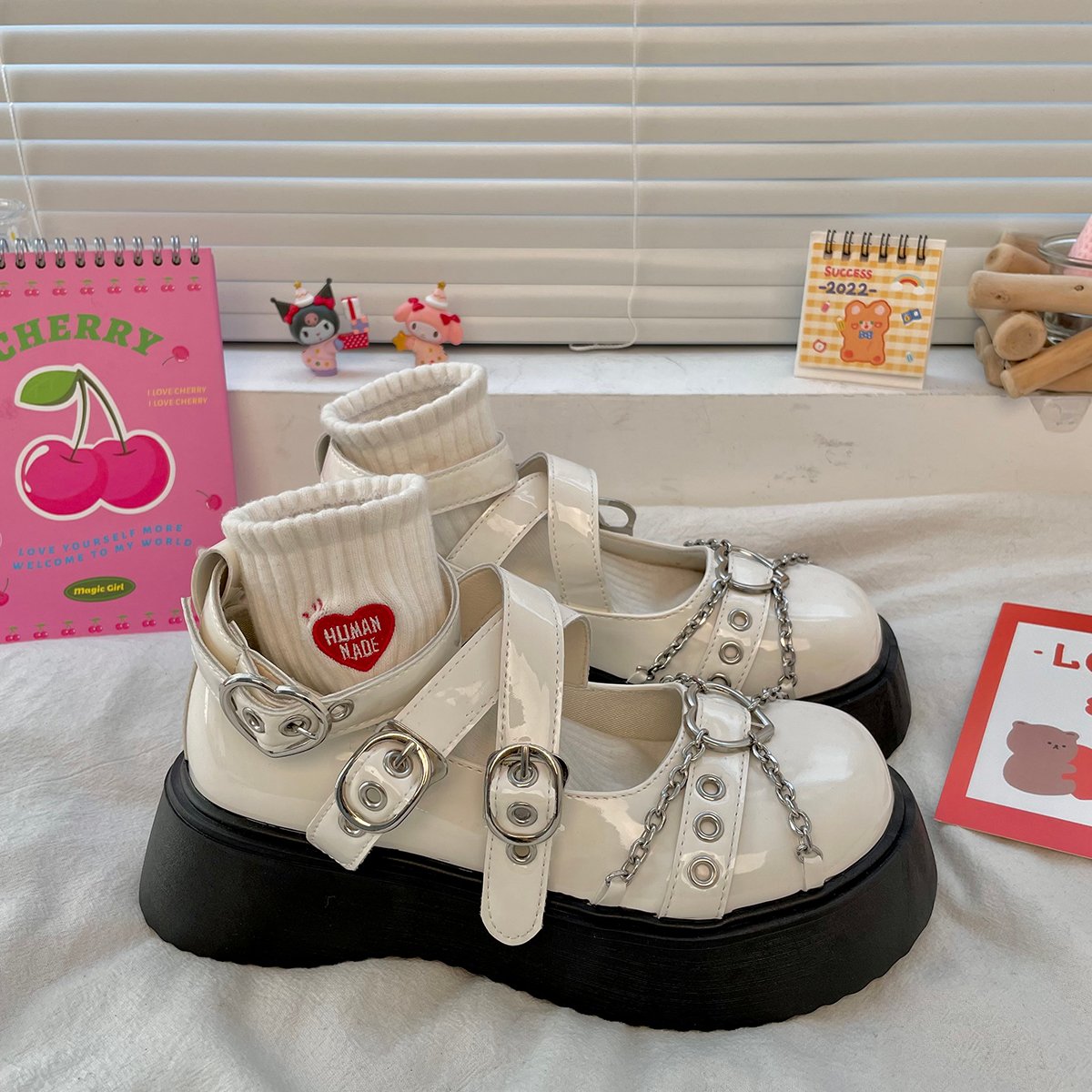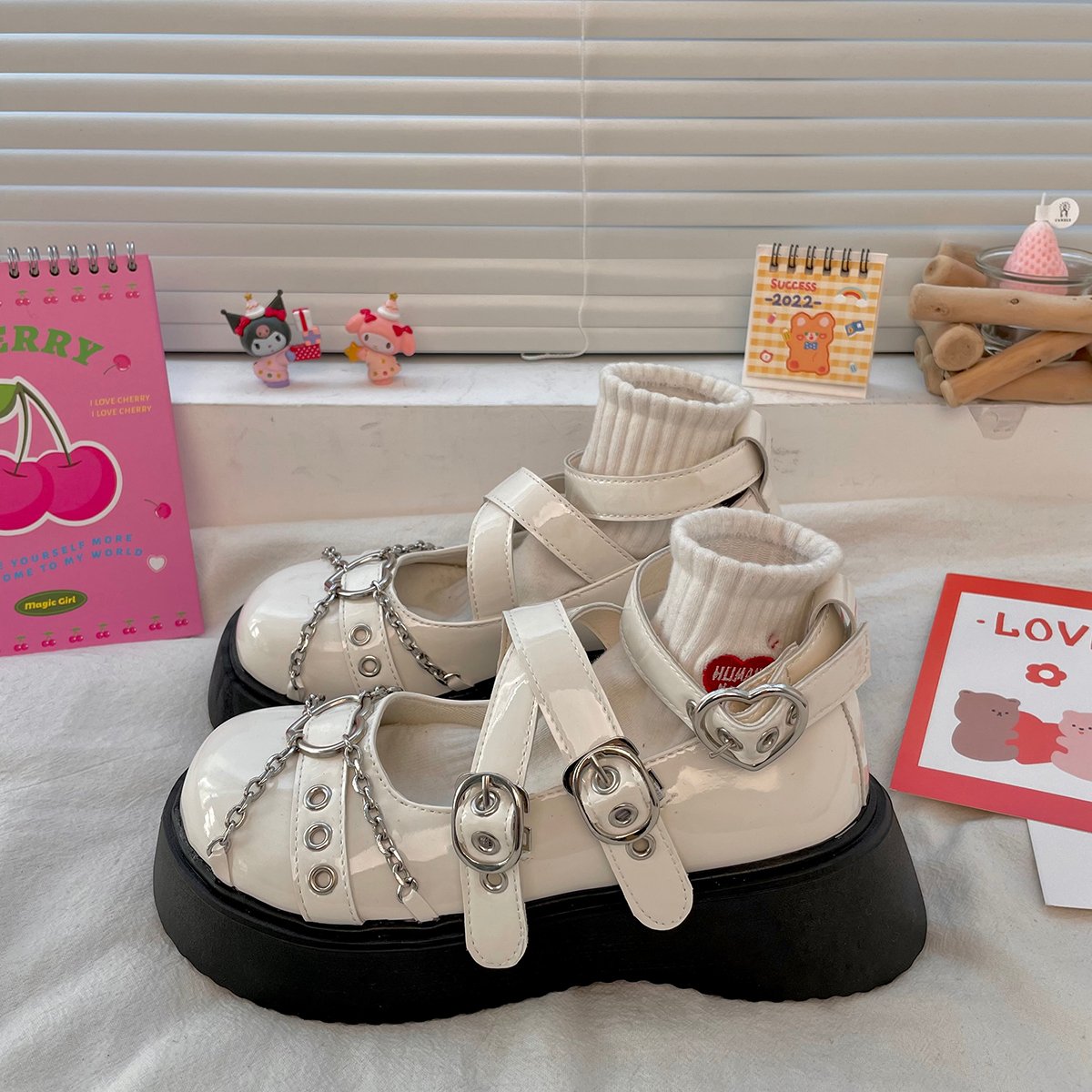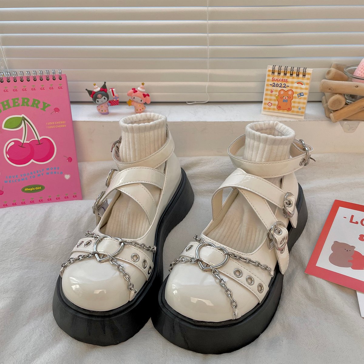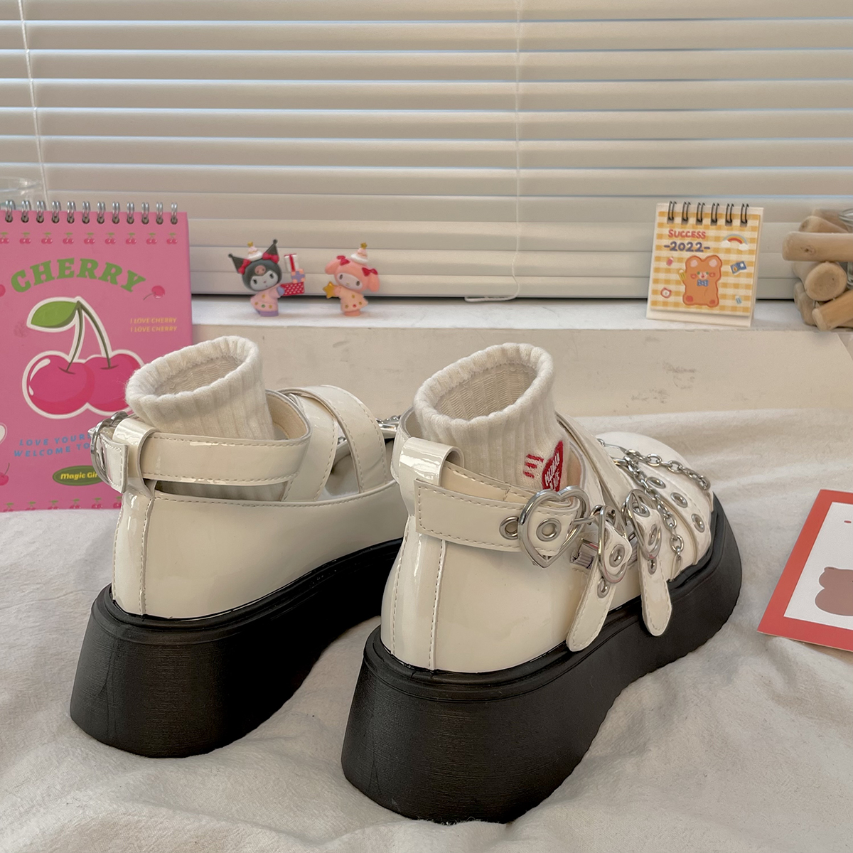 Metal Heart Chain Round Toe Mary Jame Shoes