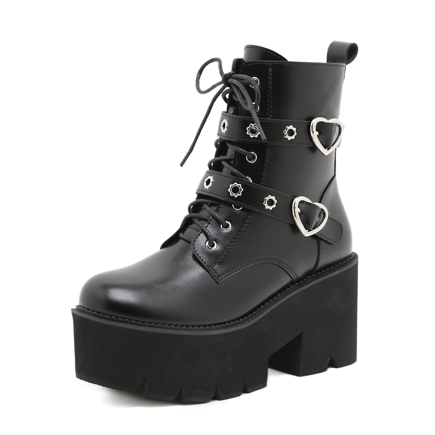 Metal Heart Buckle Platform Booties