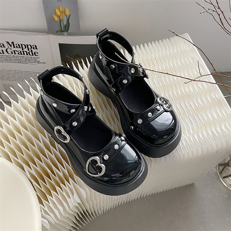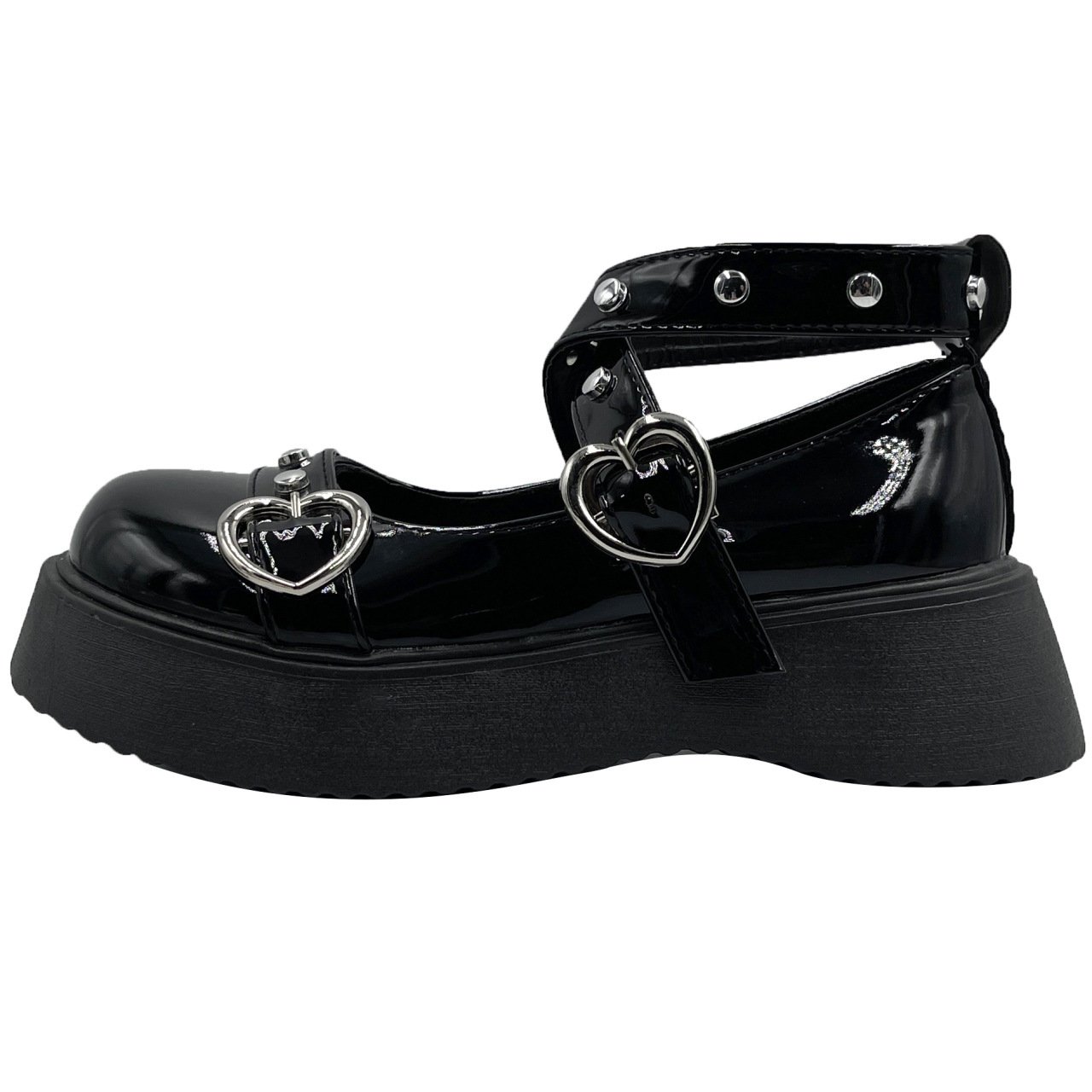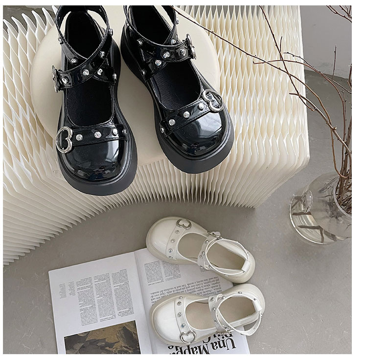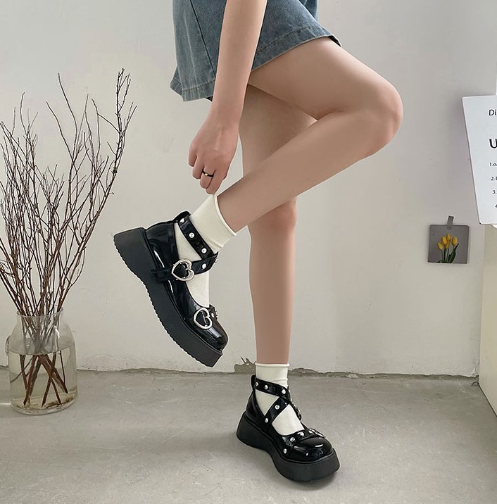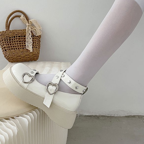 Heart Buckle & Studded Decor Flatform Mary Jane Shoes