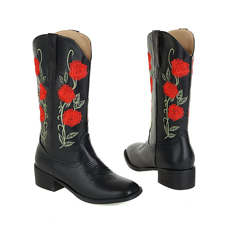 Rose Embroidered Knight Boots