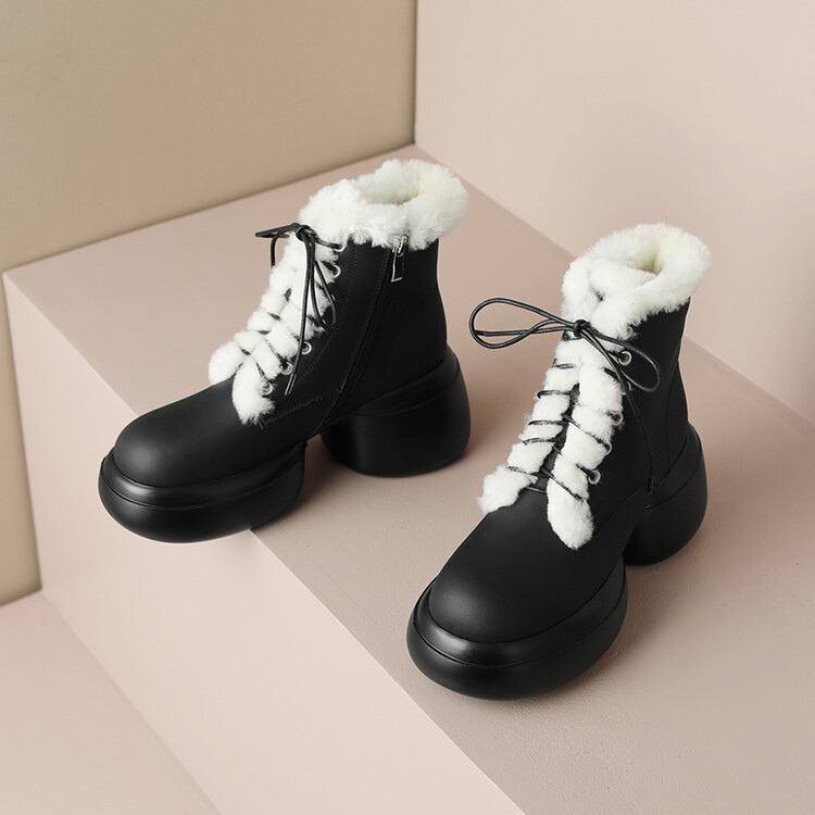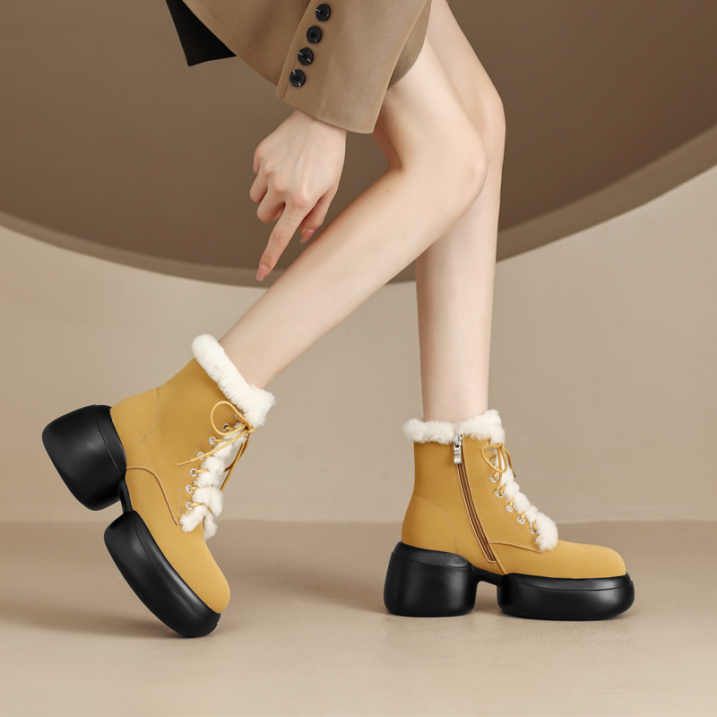 Material: PU leather/Fleece Heel height: 6.5cm Size is in US size. Please do carefully mind the sizing chart!