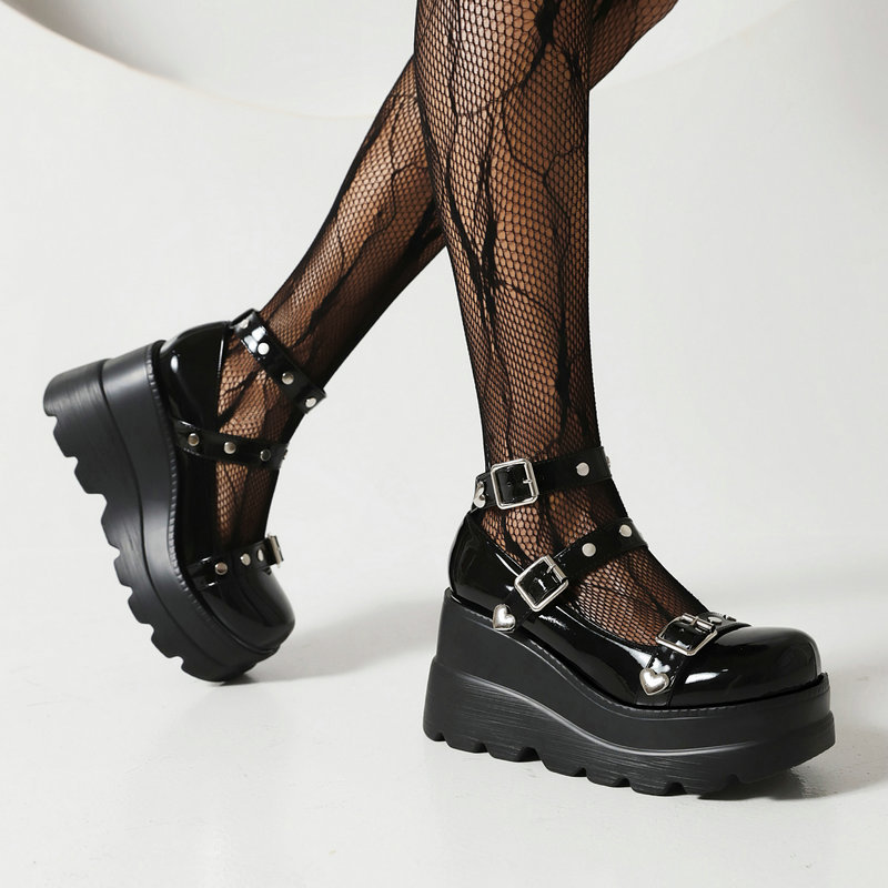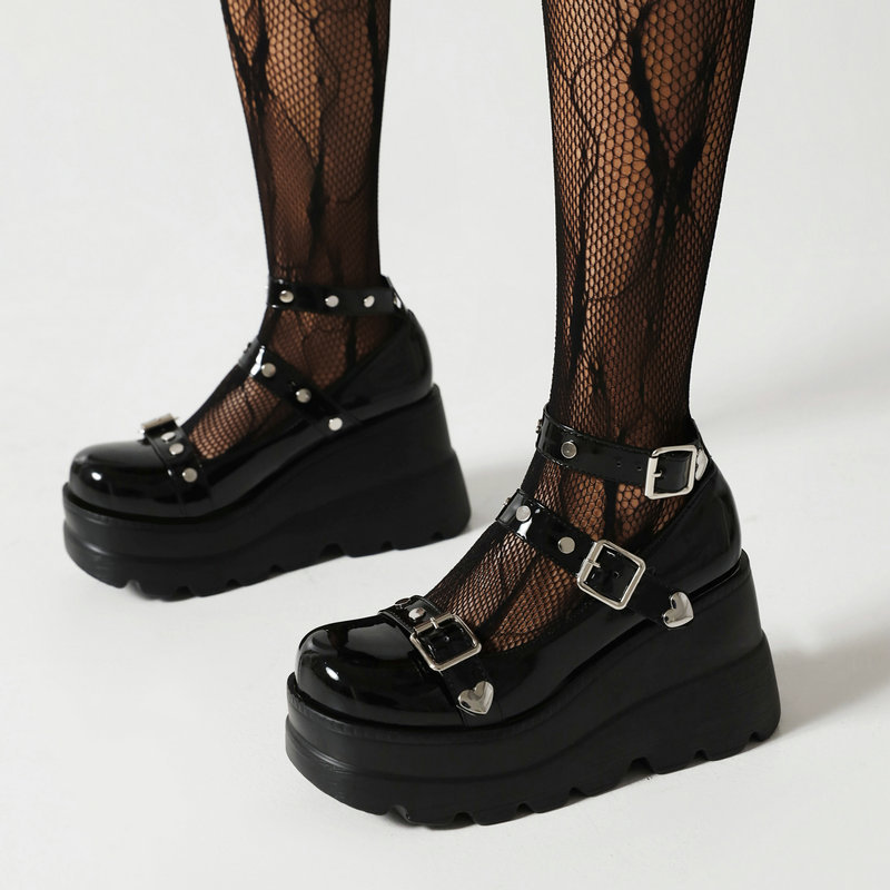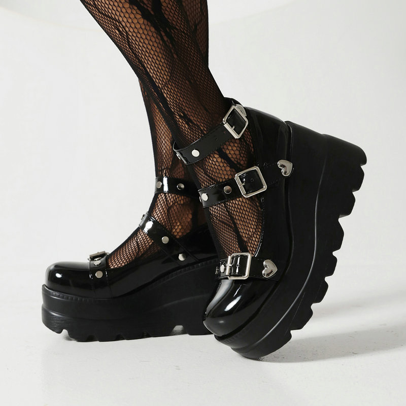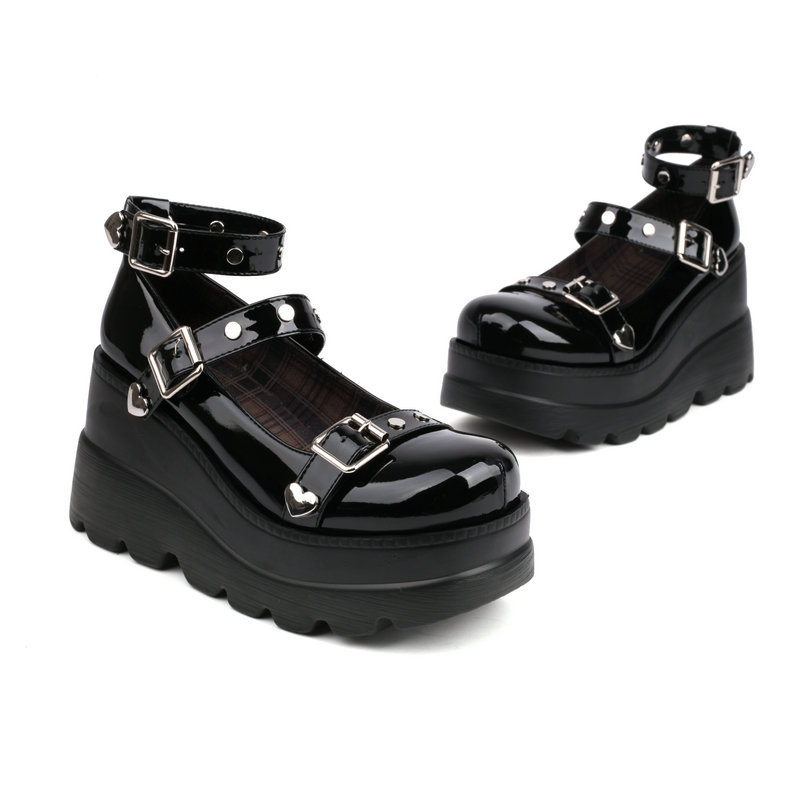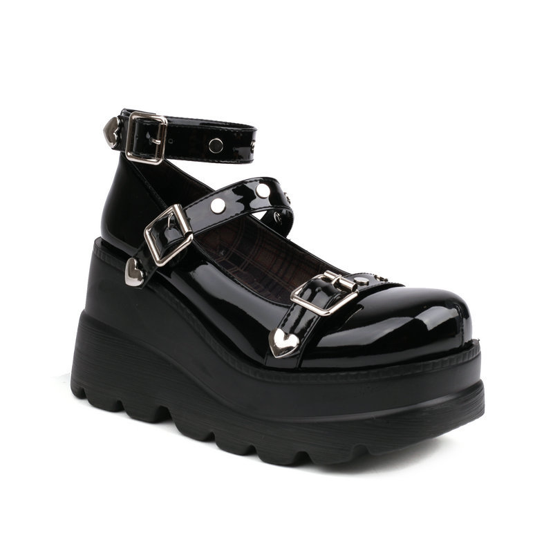 Black Heart Buckel Mary Jane Platform Shoes