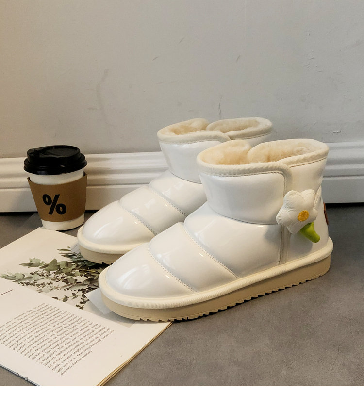 White Flower Waterproof Snow Boots