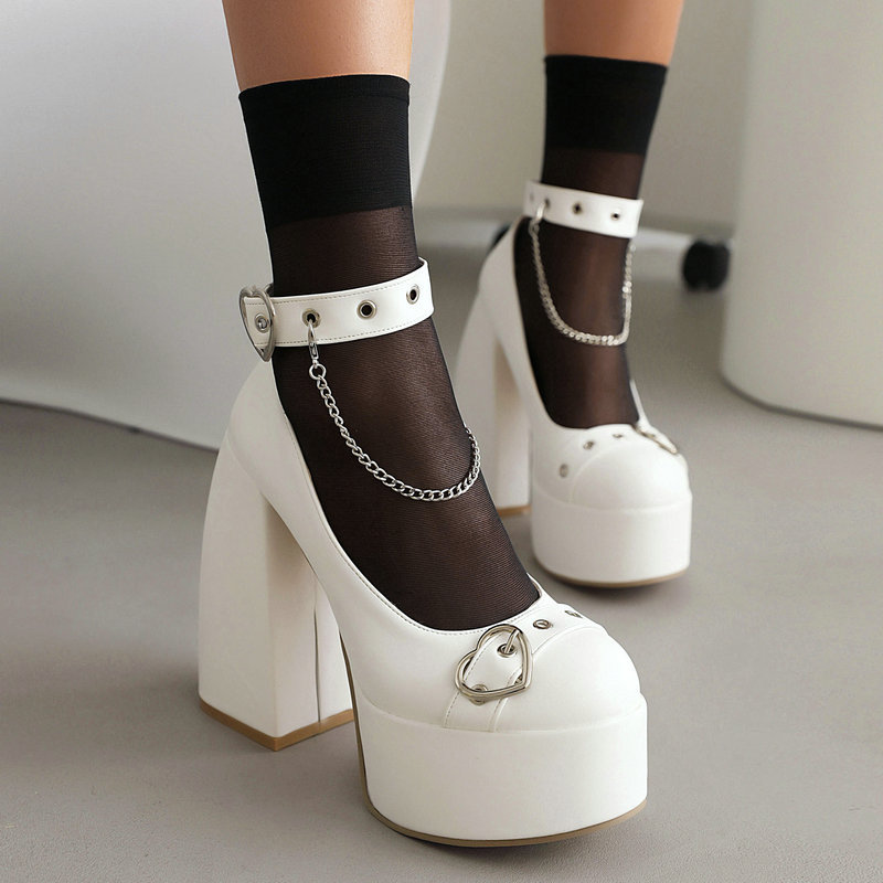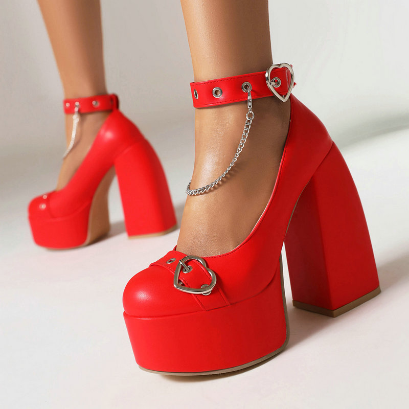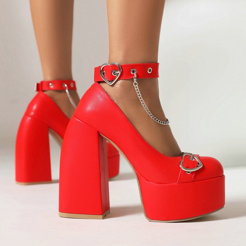 Love Heart Chain Chunky High Heels