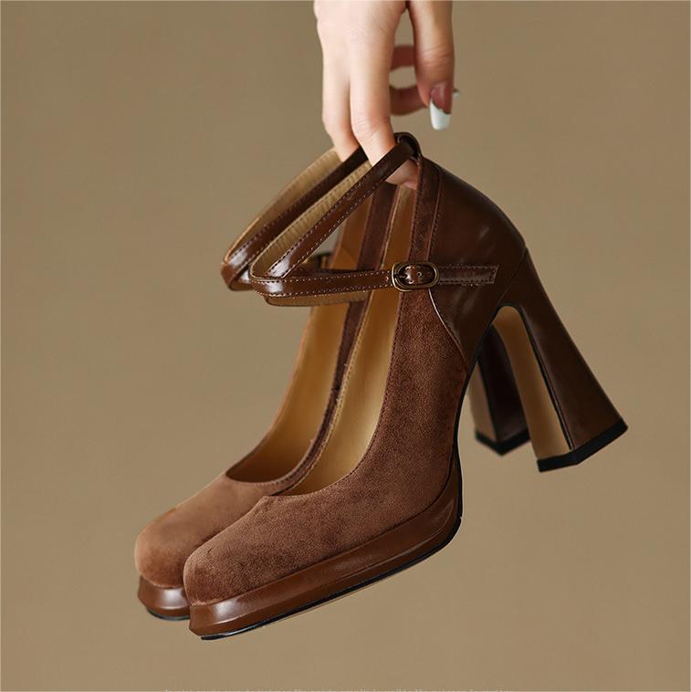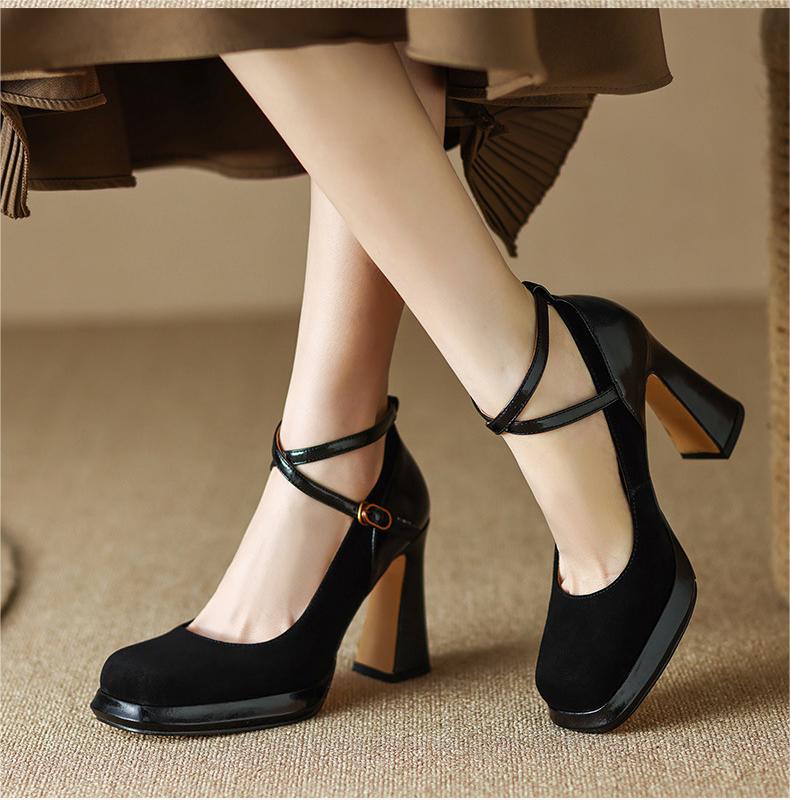 Material: Suede leather + PU leather; Heel height: 9.5cm; Size is in US size. Please do carefully mind the sizing chart!