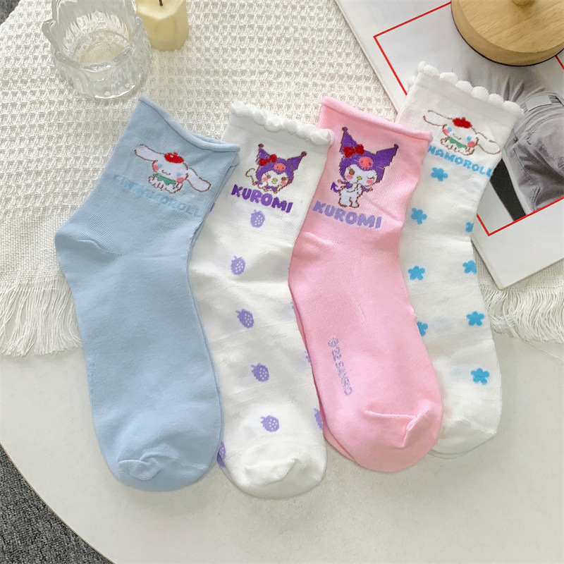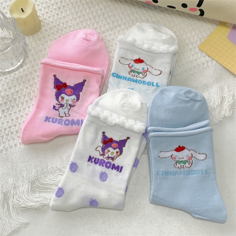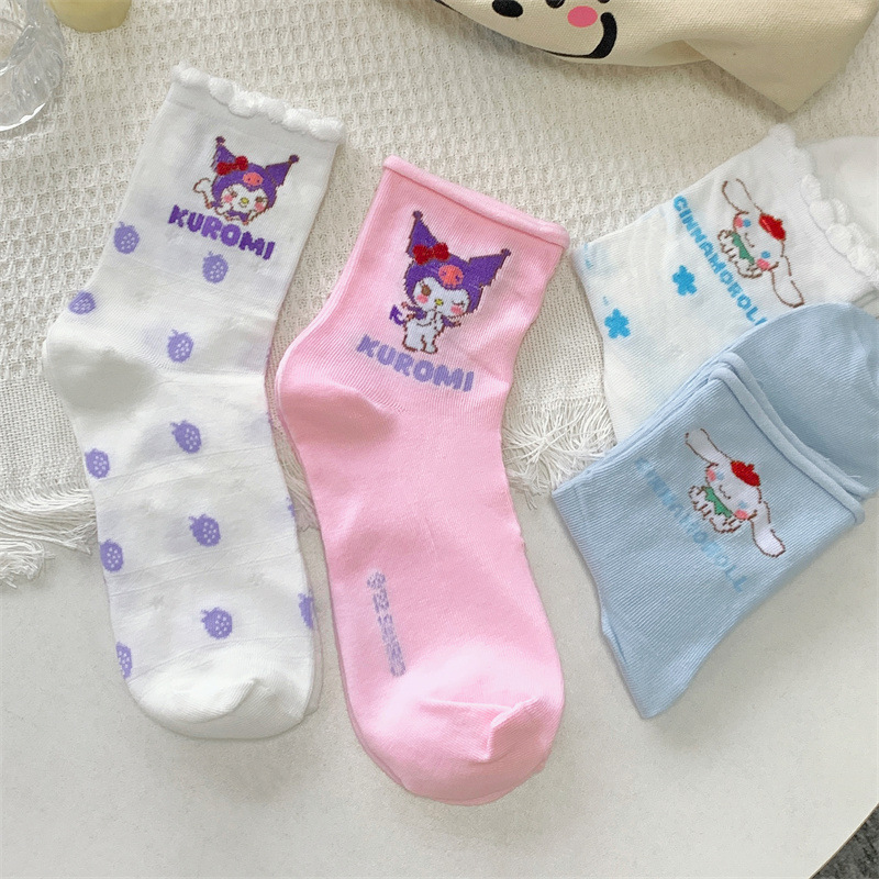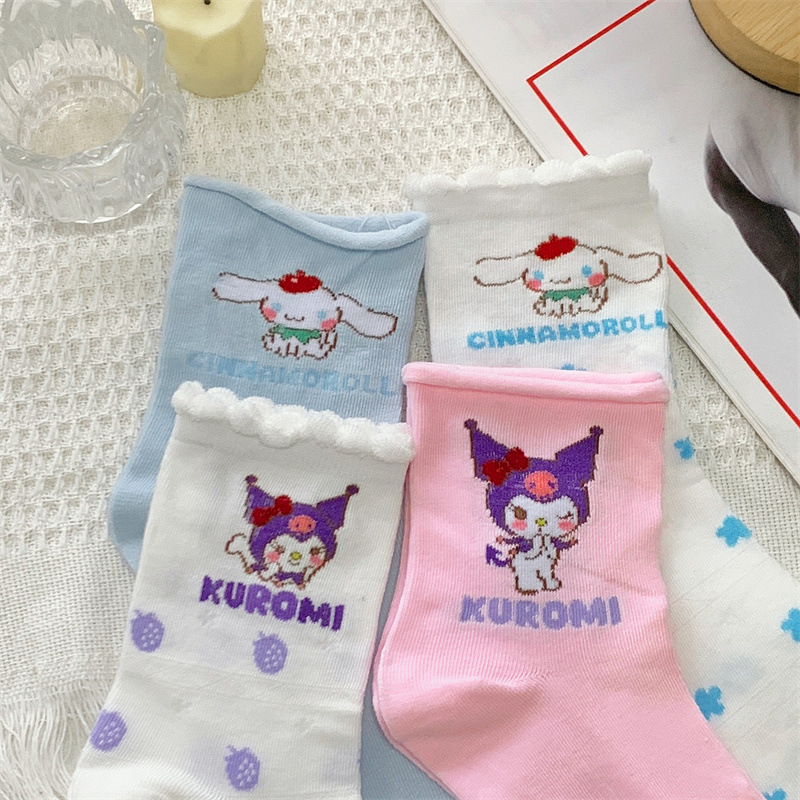 4pairs Kawaii Sanri0 Kuromi Cinnamor0ll Socks