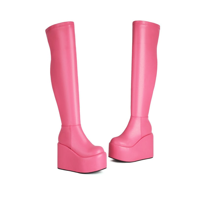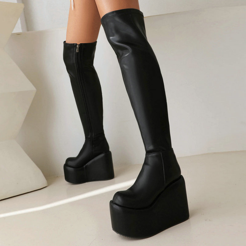 Platform Side Zipper Stretch Thigh-High Boots