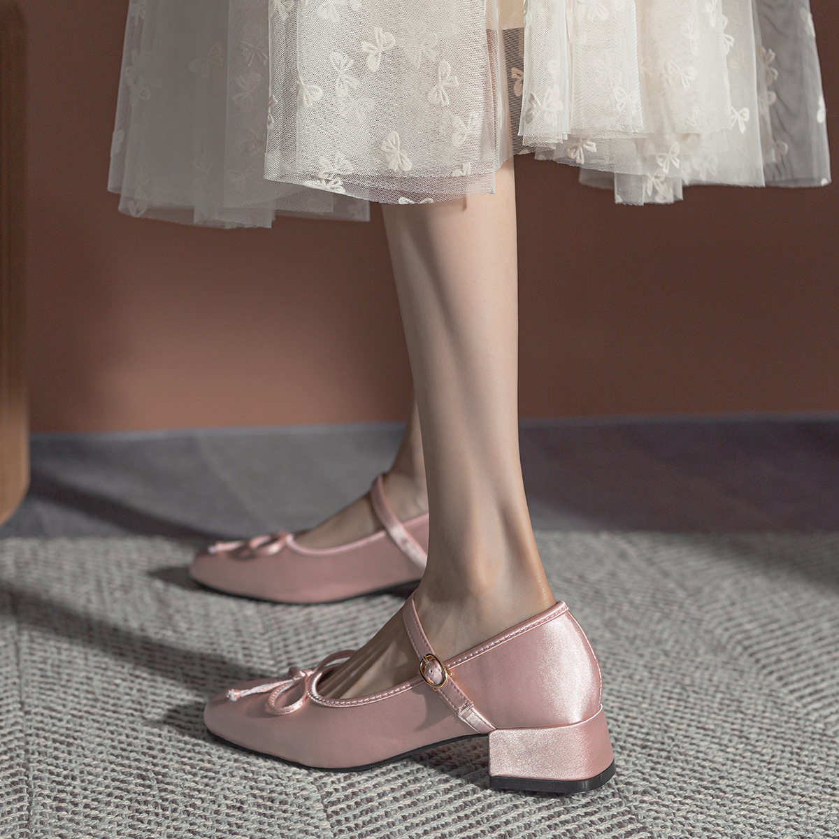 2023 Sweet Satin Ballet Chunky Heeled Shoes