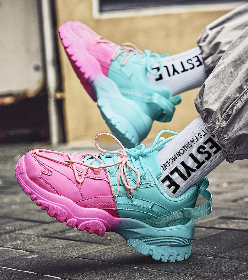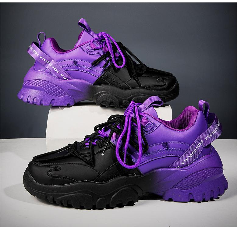 These shoes are designed with a color block pattern that is striking and fashionable. You can choose from different colors and combinations, such as black/white, pink/blue, or purple/black. They will match any outfit, such as jeans, shorts, shirts, or jackets. They will make you look stylish and confident, while also showing off your personality and taste.