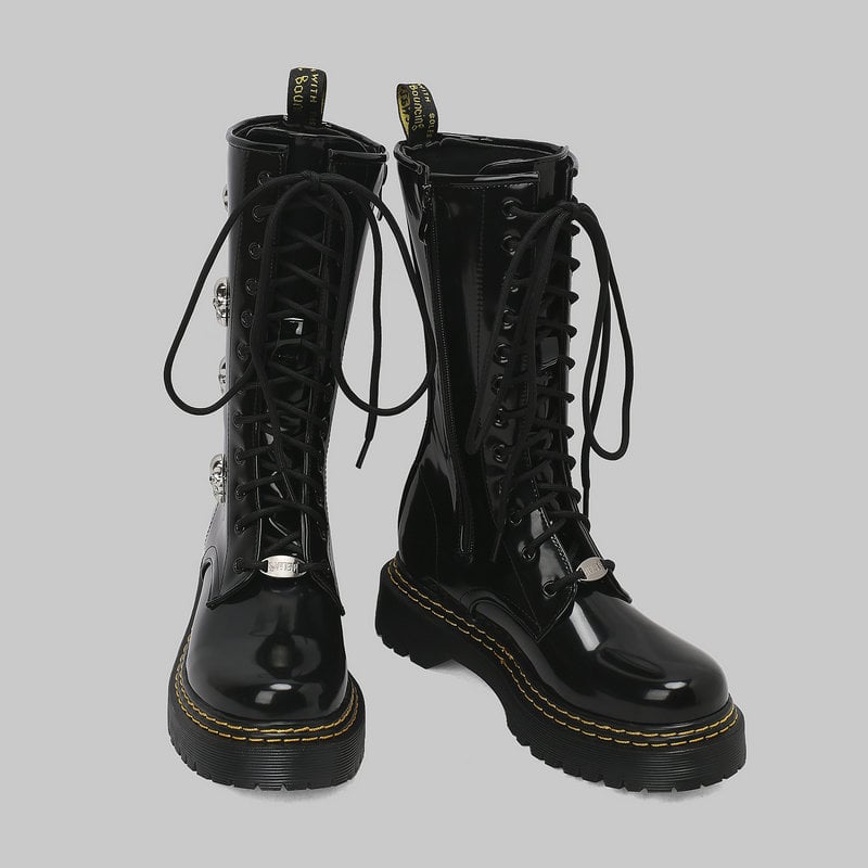 Skull Patent Leather Lace Up Boots are comfortable, durable, and easy to wear. They are available in different sizes to fit your feet. Order yours today and show off your skull-tastic boots.