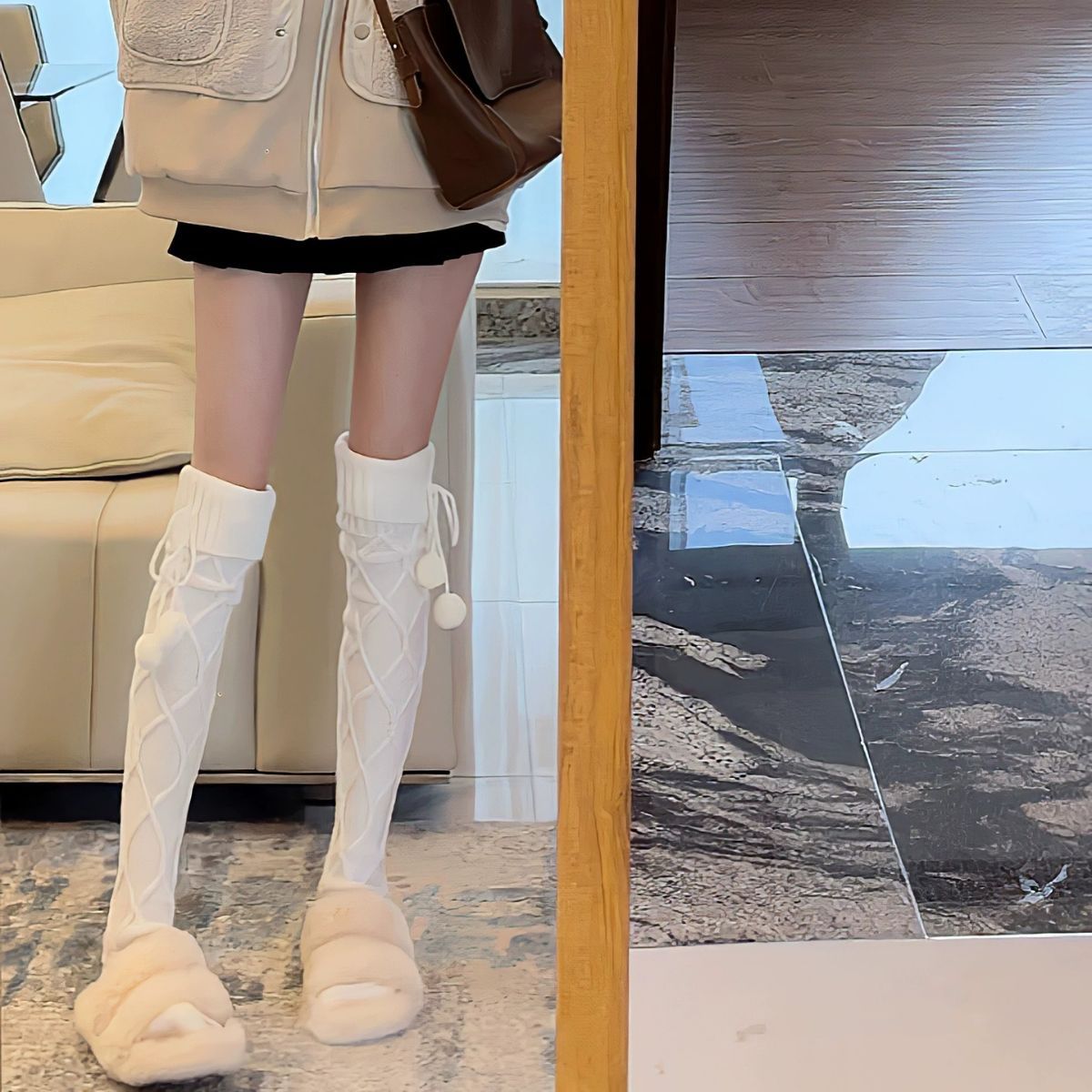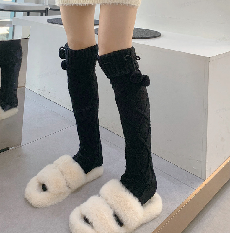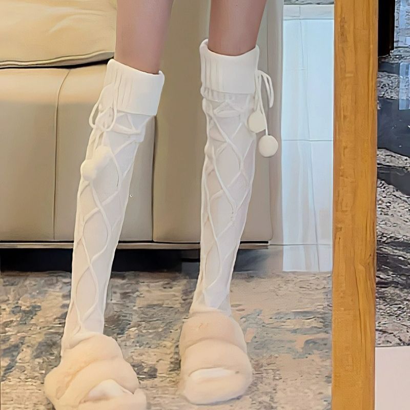 Cable Knit PomPom Knee-length Socks Stockings
