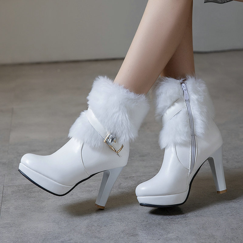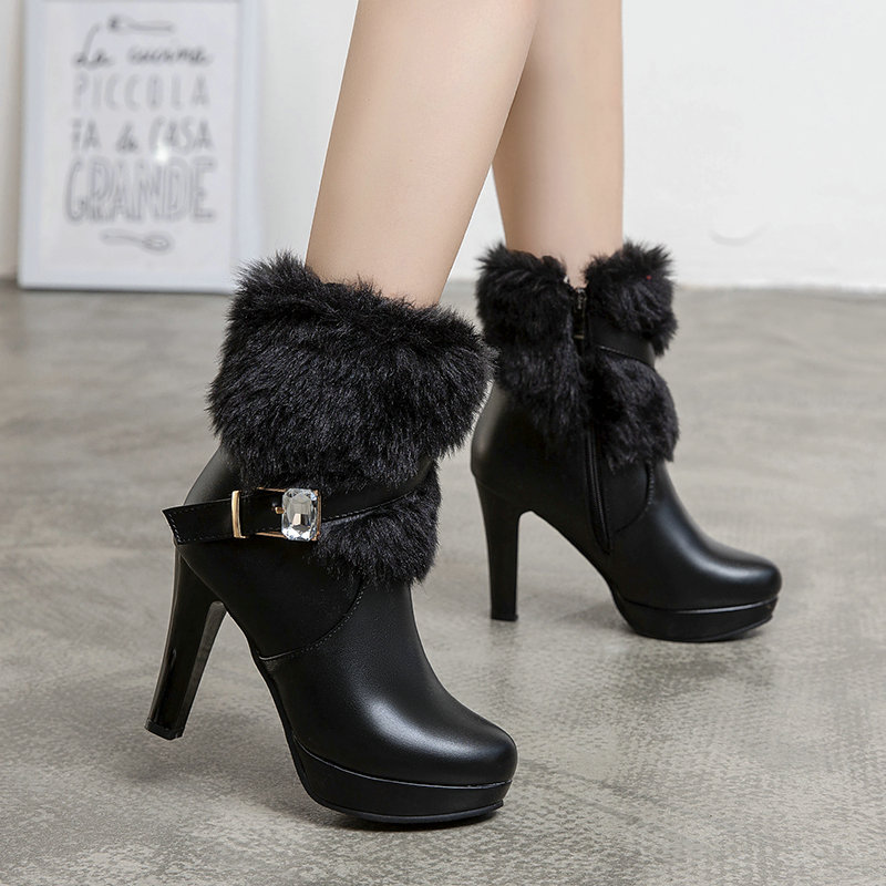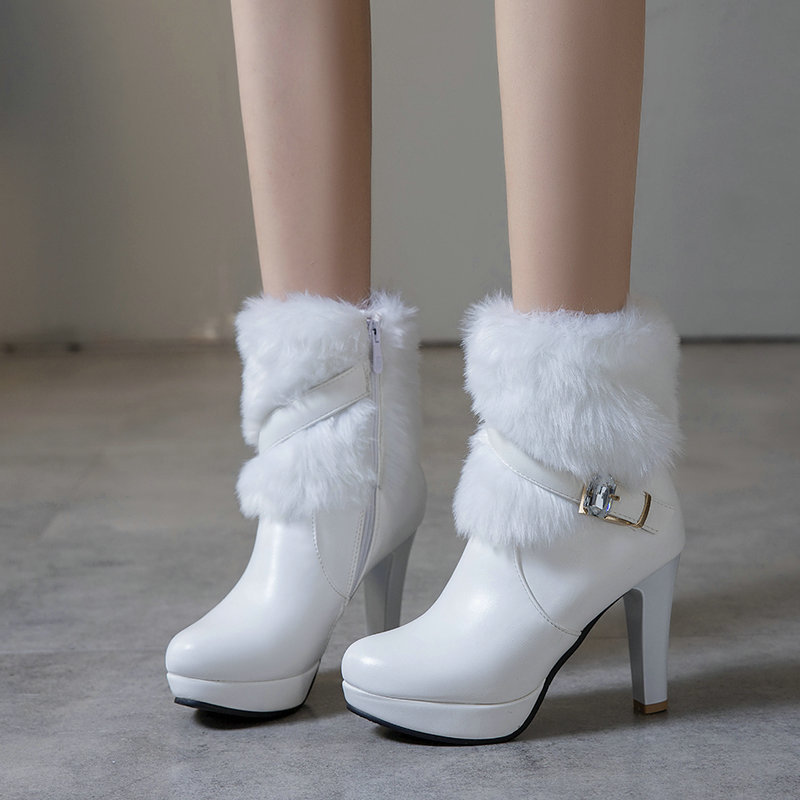 Winter Warm Furry Ankle Heeled Boots