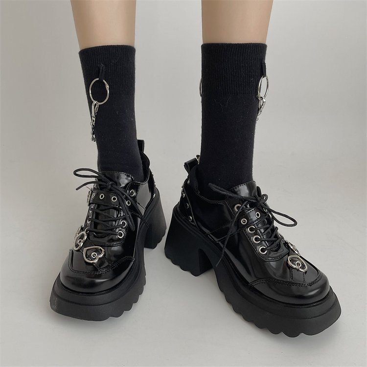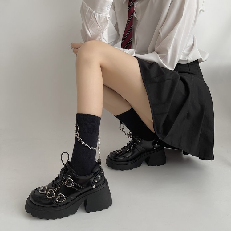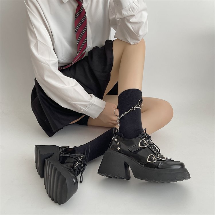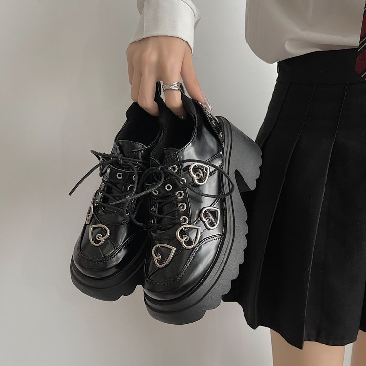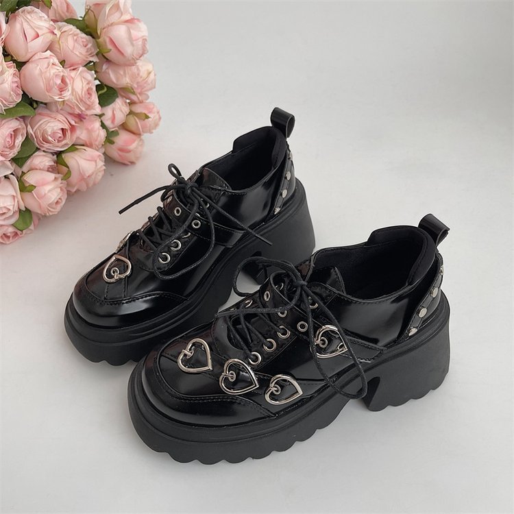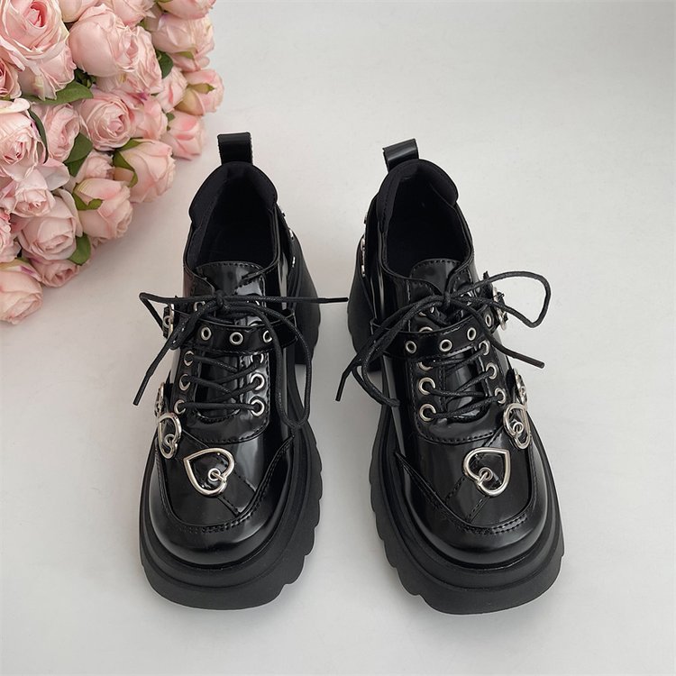 Fashion Black Heart Buckle Lace Up Leather Shoes