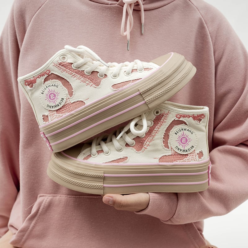 Pink High Top Cavas Shoes
