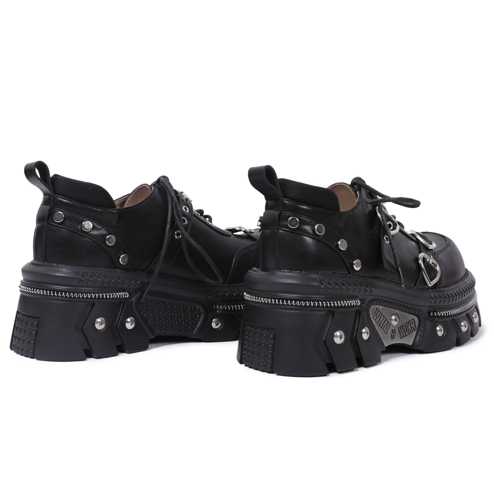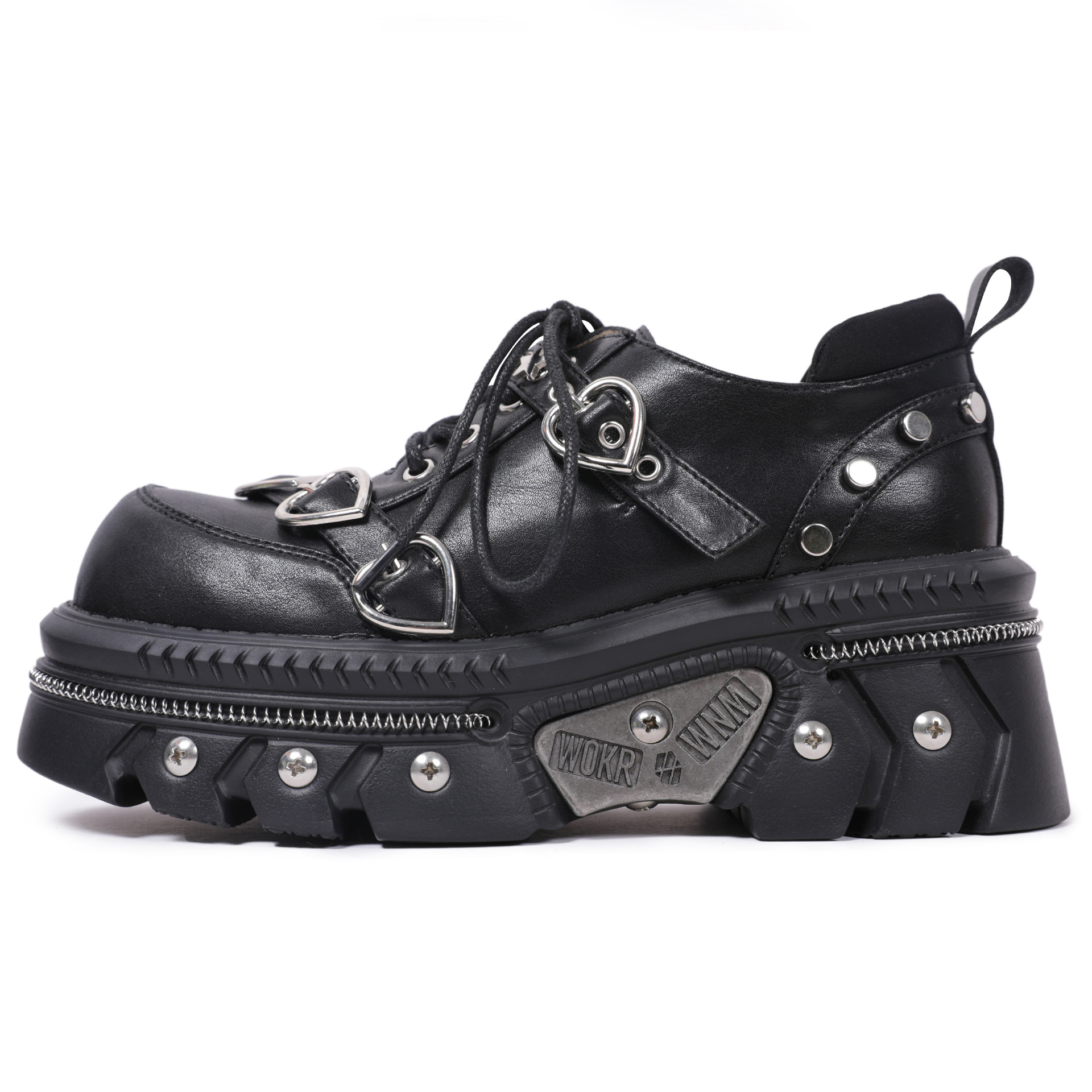 Elevate your style with our Metal Fashion Heart Buckles Lace-up Platform Leather Shoes. Featuring metal heart buckles and studded accents, these shoes embody gothic punk flair with a touch of edgy romance. Crafted with premium leather and a platform sole, they offer both durability and fashion-forward appeal for the bold trendsetter.