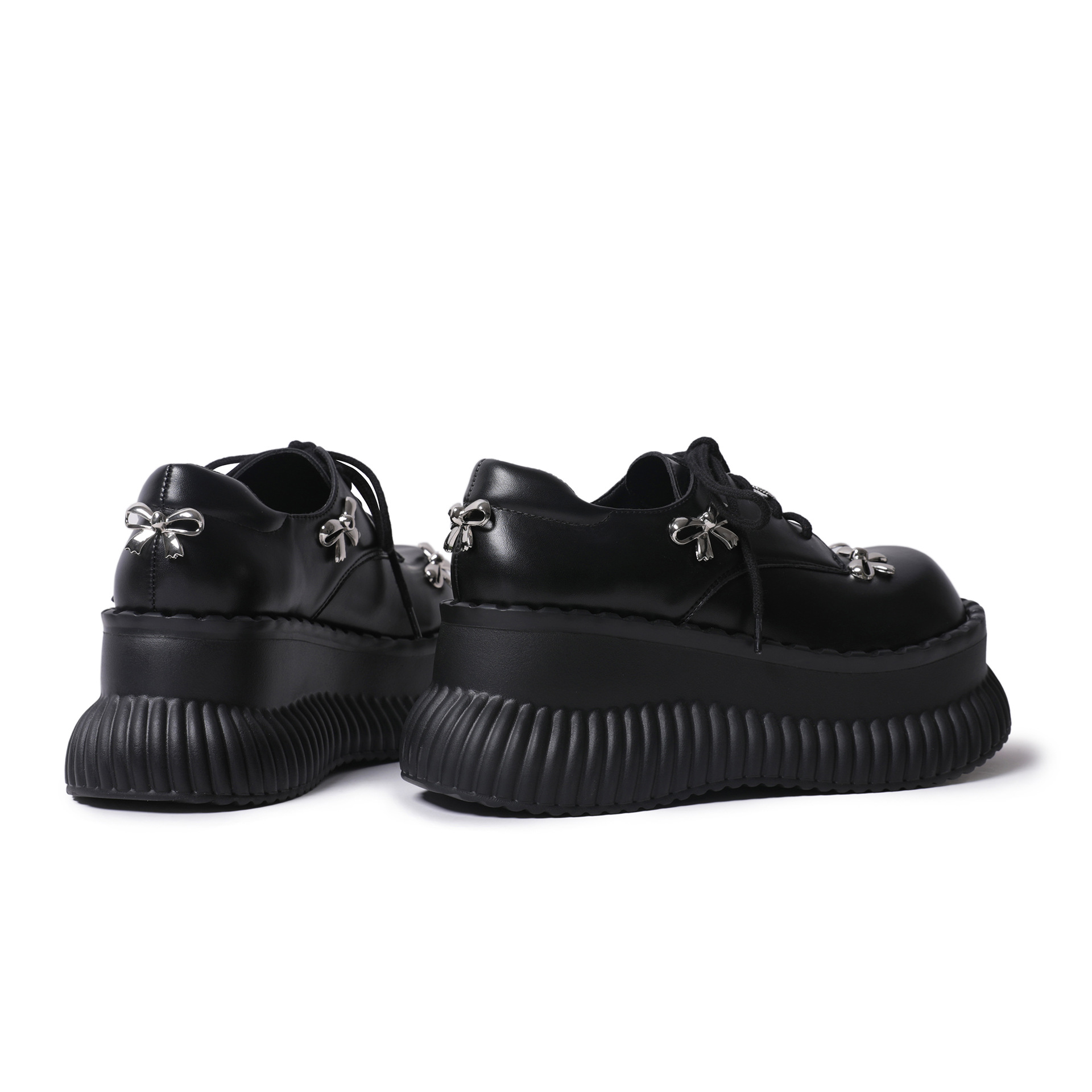 Metal Butterfly Accessories Lace-Up Platform Leather Shoes