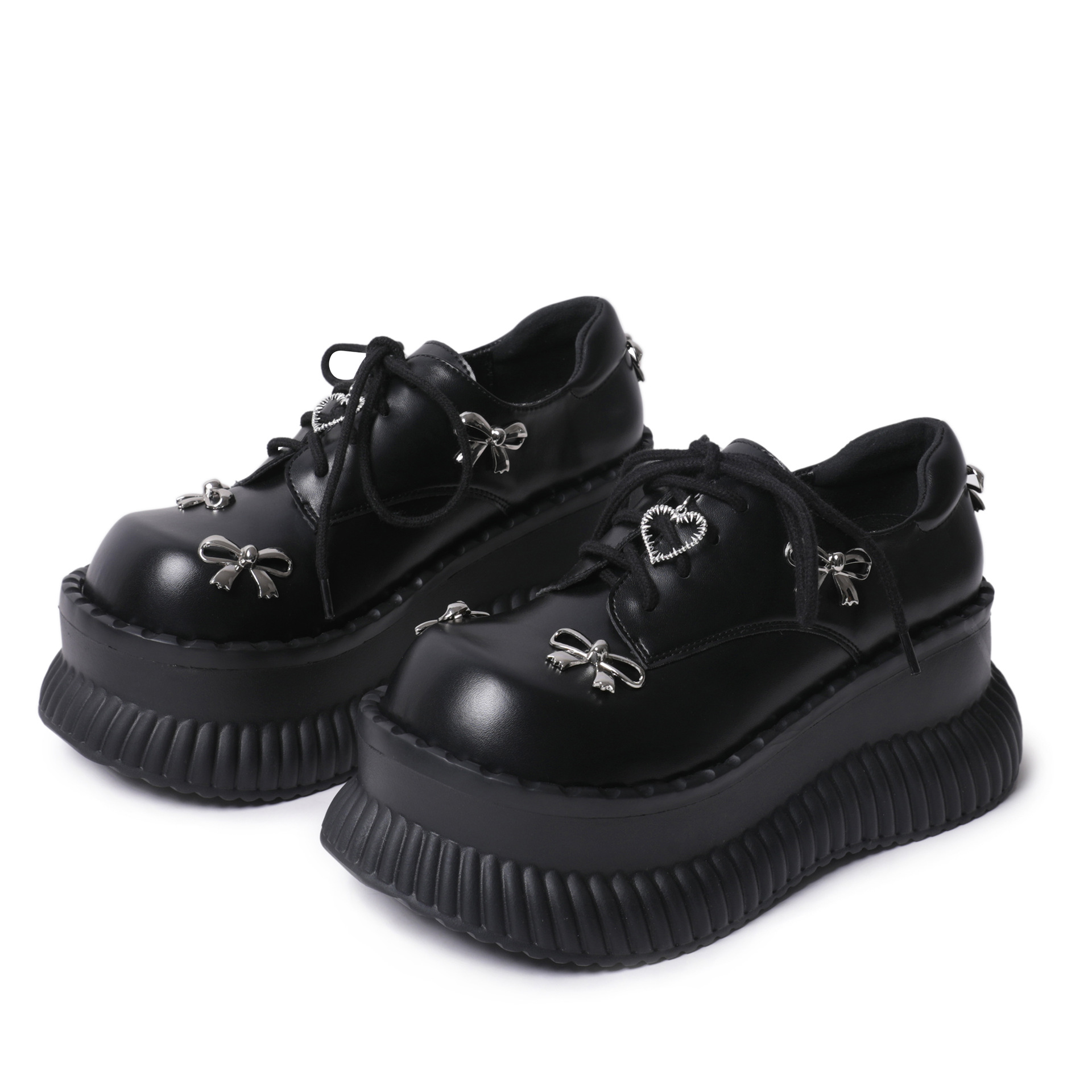 Elevate your style with our Metal Butterfly Accessories Lace-Up Platform Leather Shoes. Featuring intricate metal butterflies and a chic bowknot, these shoes embody gothic punk elegance. Crafted with premium leather and a platform sole, they blend fashion and comfort seamlessly for a unique and trendy look.