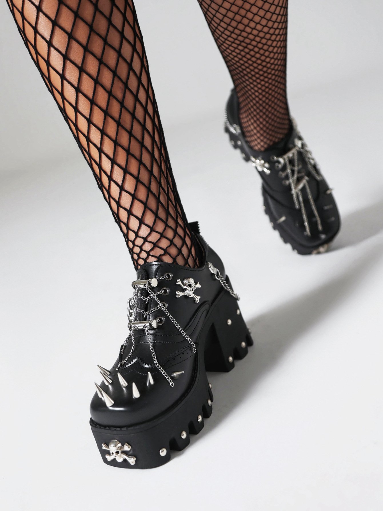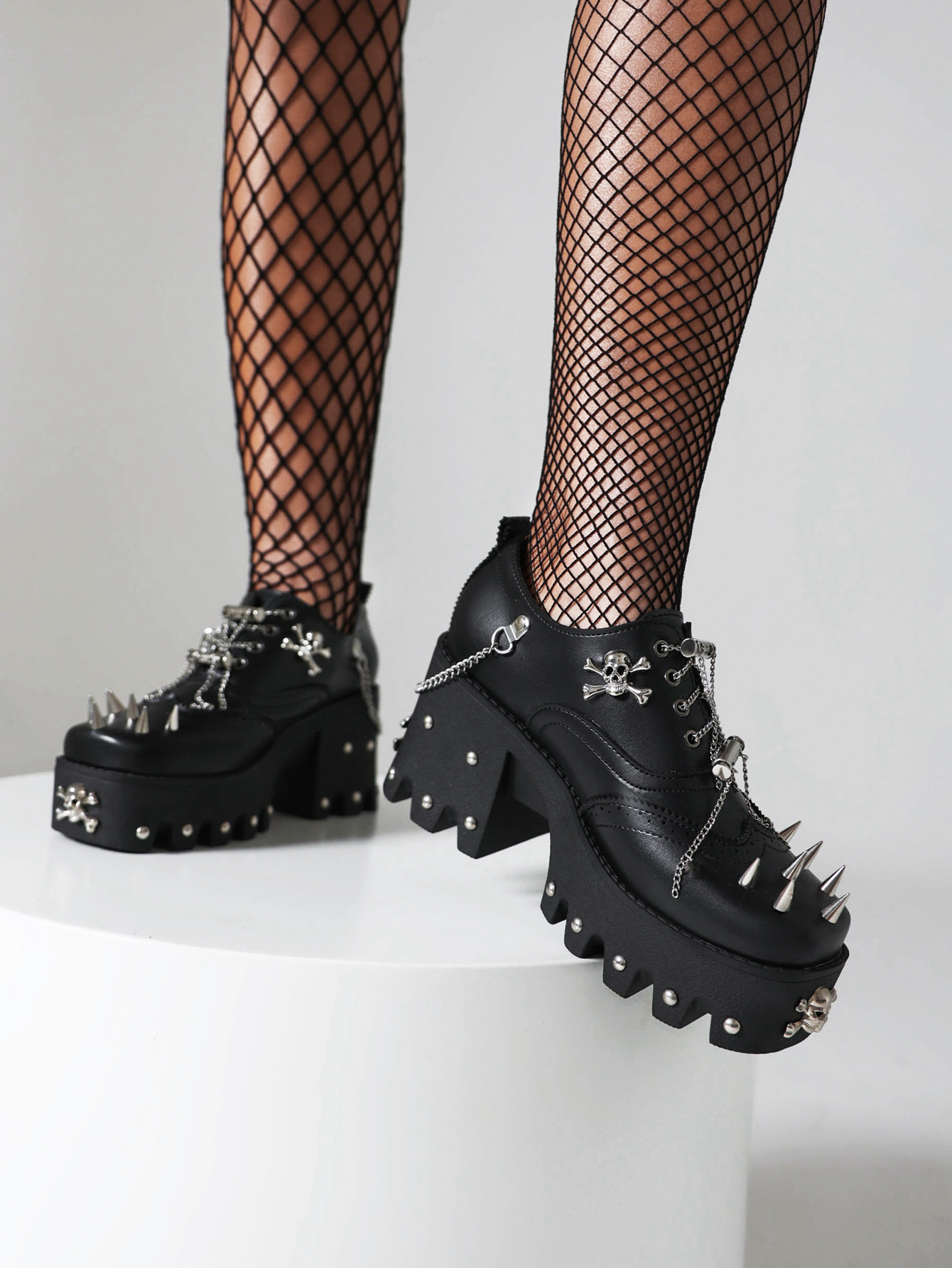 Gothic Punk Chain Rivet Skull Studded Platform Shoes