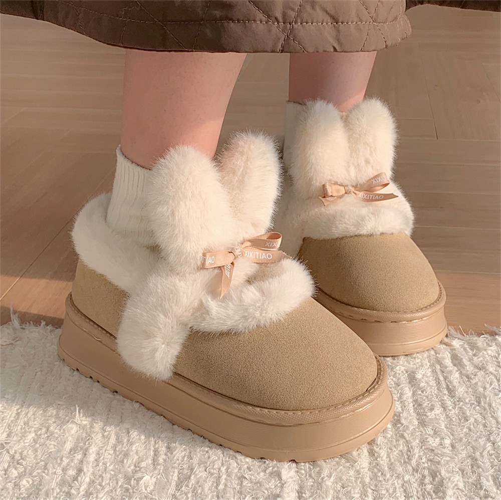 Stay cozy and stylish this winter with our Soft Rabbit Ears Warm Snow Boots. These adorable and functional boots are designed to keep your feet warm and dry in even the harshest weather conditions. The soft, faux rabbit ears add a playful touch, while the high-quality insulation and waterproof exterior provide reliable protection. Perfect for snow days, outdoor adventures, or simply staying warm around the house.