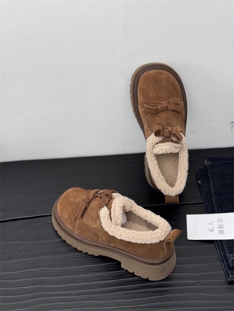 Fleece Warm Loafers With Bowknots