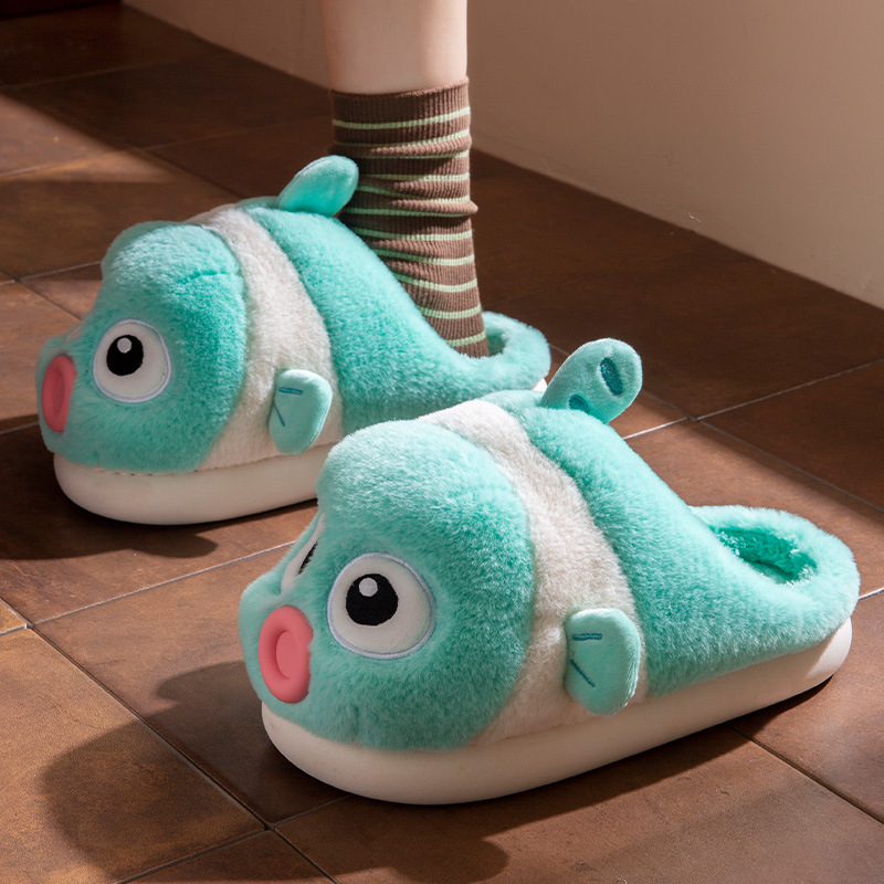 Blue Fish Fuzzy Slippers