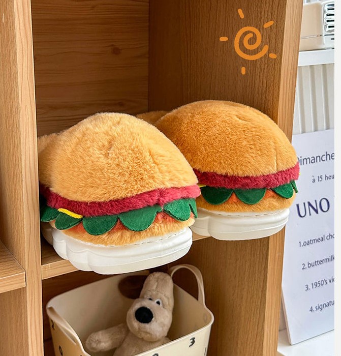 Sink your feet into pure comfort with our Cozy Hamburger Slippers. These soft and squishy slippers are the perfect way to relax after a long day. The realistic hamburger design is both fun and cozy, making them a great gift for food lovers. The plush material is soft to the touch and keeps your feet warm, while the non-slip sole ensures safe and comfortable wear.