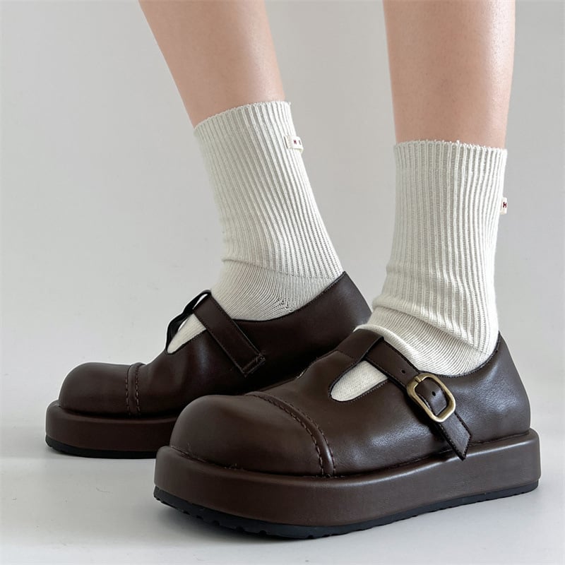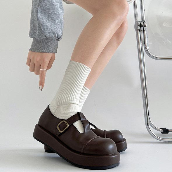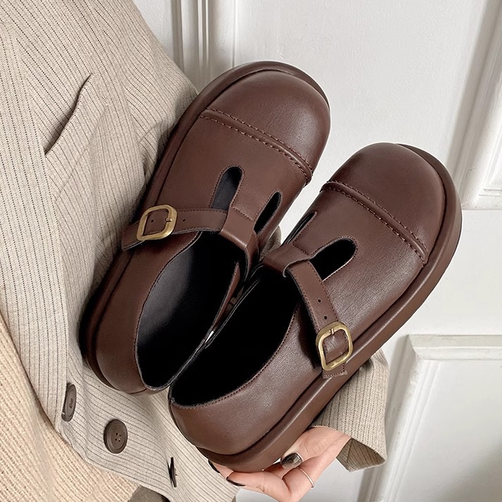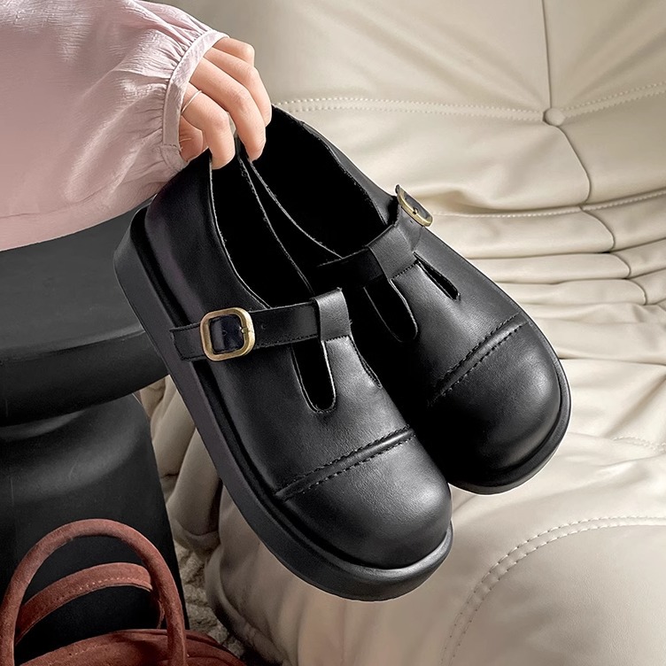 These versatile shoes feature a charming T-strap design that gracefully accentuates your foot while offering a secure fit. The round toe adds a touch of softness and femininity, making them perfect for both casual and dressy occasions.